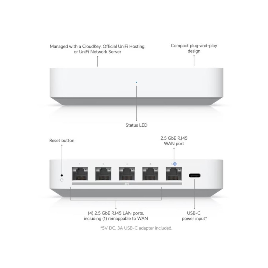 UXG-MAX має невелику масу та ергономічний дизайн, що робить його зручним у встановленні та експлуатації. Пристрій споживає мінімум енергії завдяки живленню через USB-C, зберігаючи високий рівень продуктивності без додаткових витрат. Це рішення ідеально підходить для тих, хто цінує енергоефективність та сучасний підхід до організації мереж.