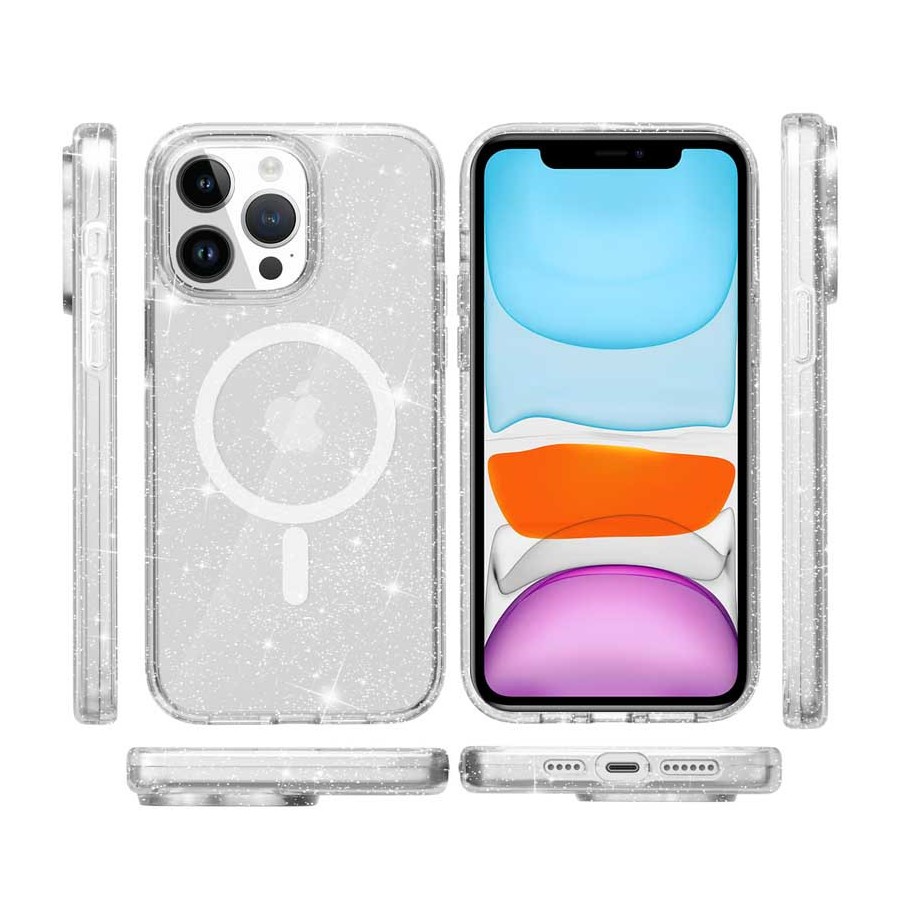 Чохол TPU Galaxy Sparkle (MagFit) для Apple iPhone 13 Pro Max (6.7") Clear+Glitter