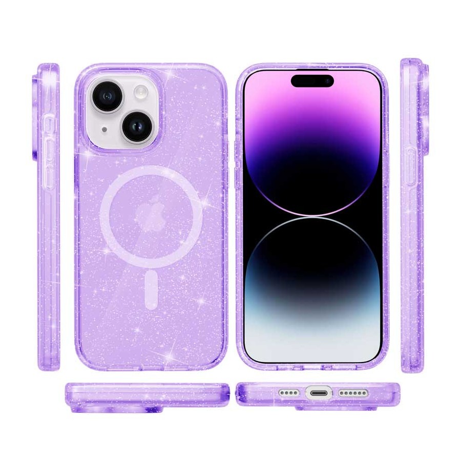 Чохол TPU Galaxy Sparkle (MagFit) для Apple iPhone 15 (6.1") Purple+Glitter