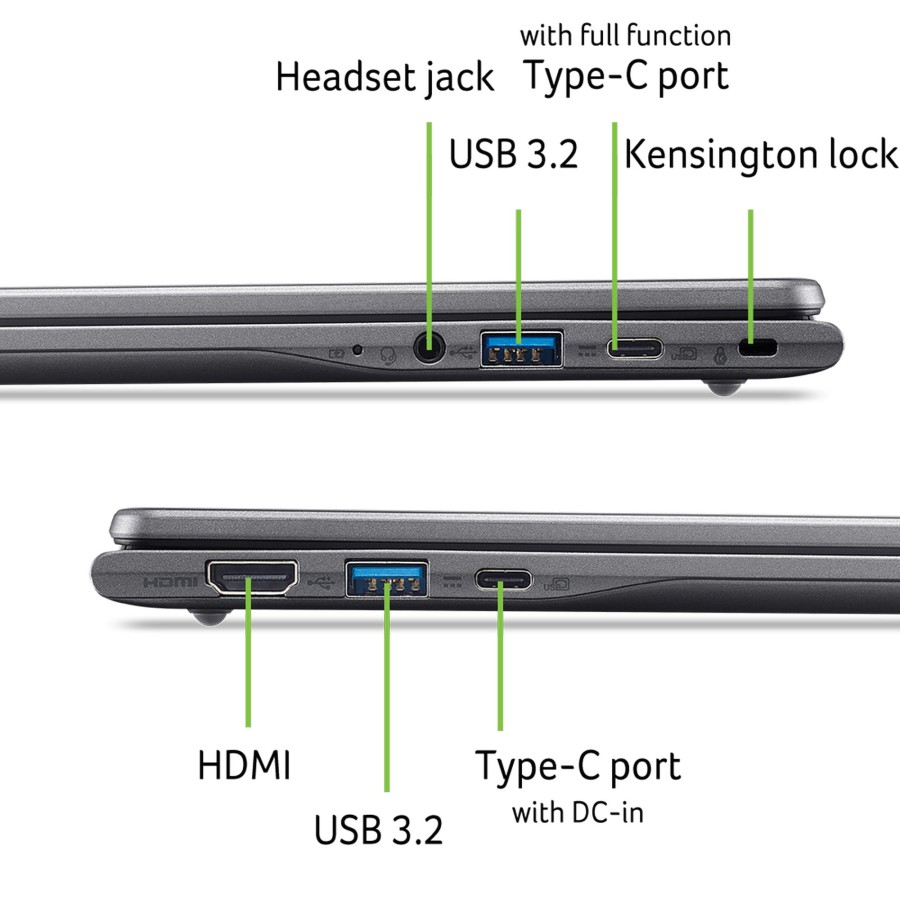 14-дюймовий сенсорний WUXGA дисплей (1920x1200) із панеллю IPS дарує яскраве й деталізоване зображення. Технологія Acer ComfyView знижує рівень відблисків, а FHD-камера робить відеозв’язок чітким і якісним.