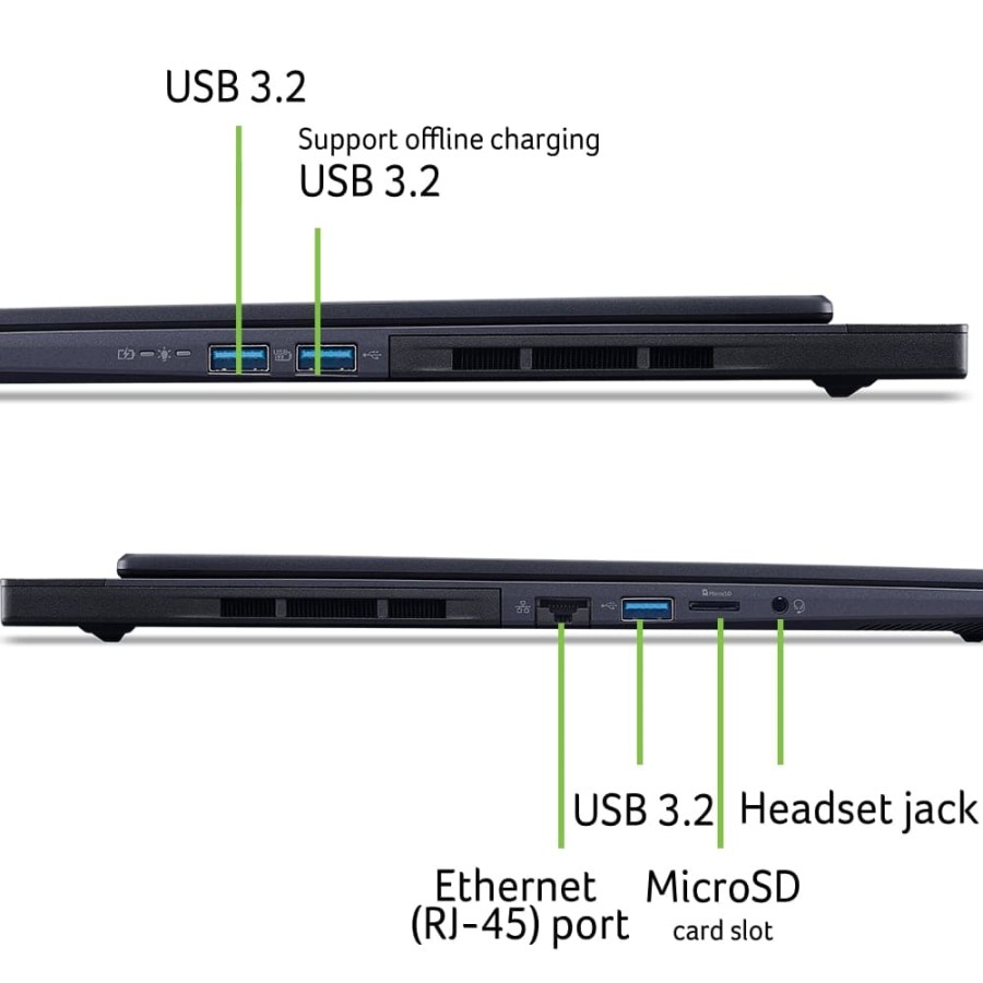 Тонкий корпус (~20 мм), стильний дизайн, ефективне теплообмінне охолодження, RGB‑підсвітка клавіатури, Wi‑Fi 6E, Thunderbolt 4.