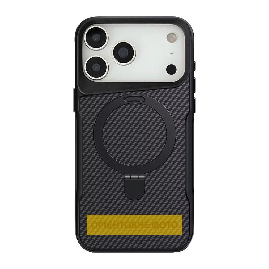 TPU+PC чохол Metal Buttons with MagSafe Carbon Ring для Apple iPhone 17 (6.3") Чорний