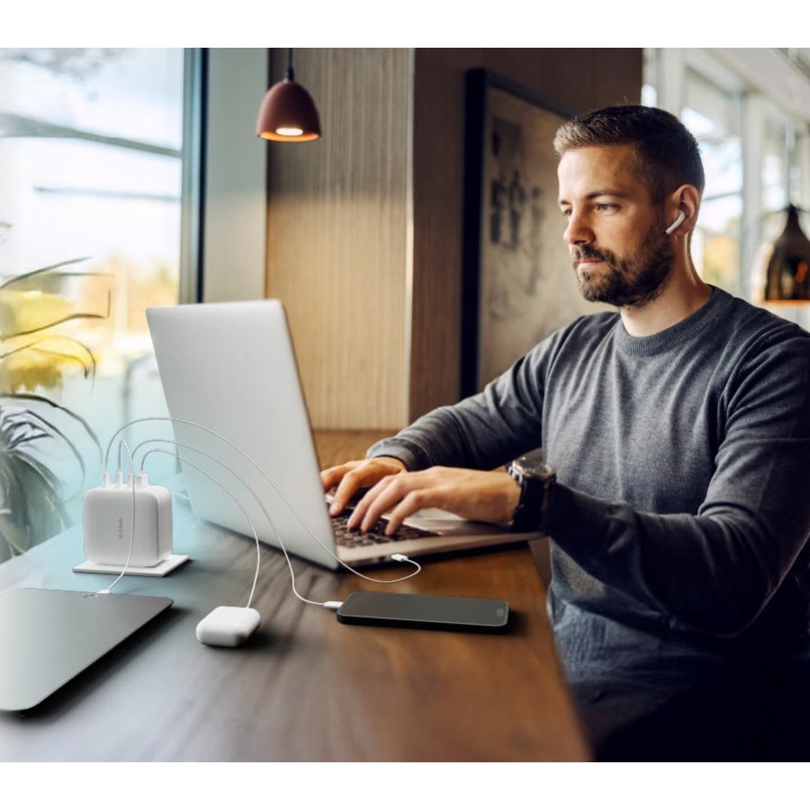 Від ранкових нарад до вечірніх прокручувань – зарядний пристрій DCP-101 100 Вт GaN підтримує вашу техніку в повністю зарядженому стані. Завдяки трьом портам USB-C і одному порту USB-A ви можете одночасно заряджати ноутбук, мобільний телефон і смарт-годинник, будь то вдома, в офісі чи деінде. Один компактний зарядний пристрій – безмежна продуктивність.
