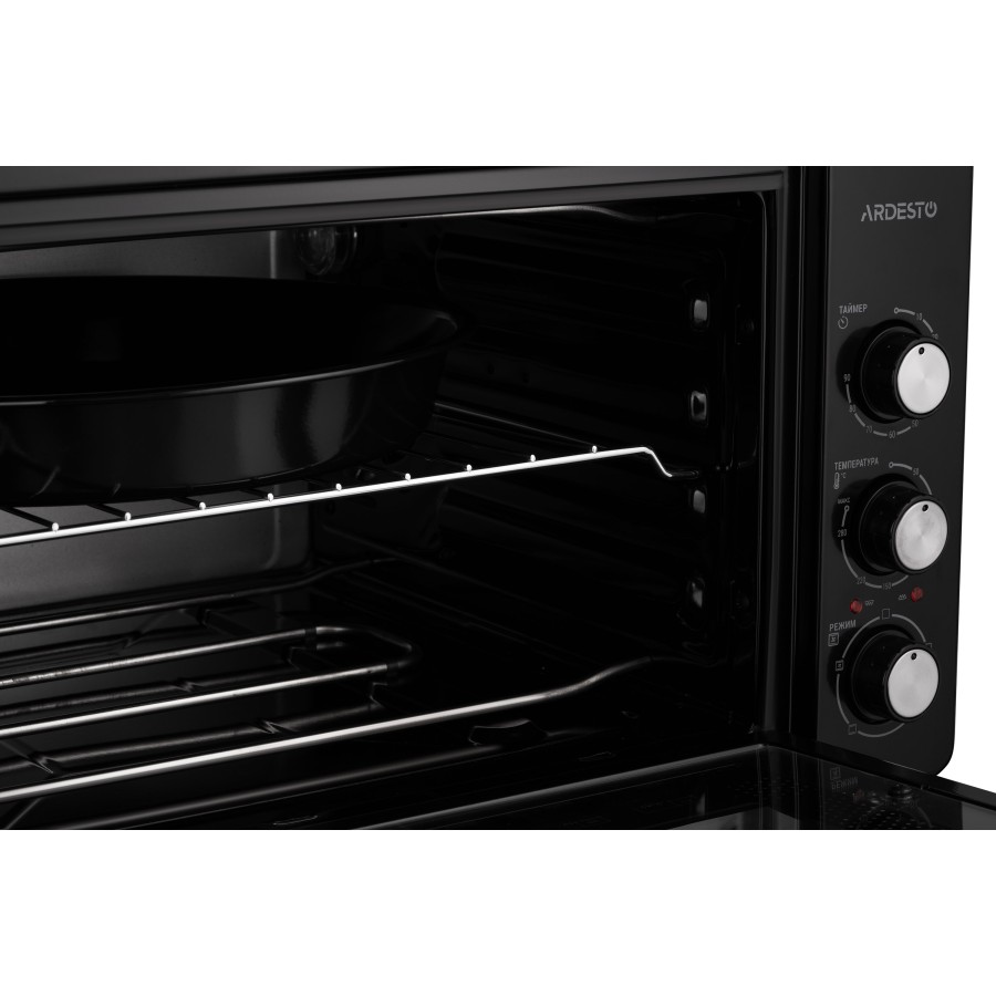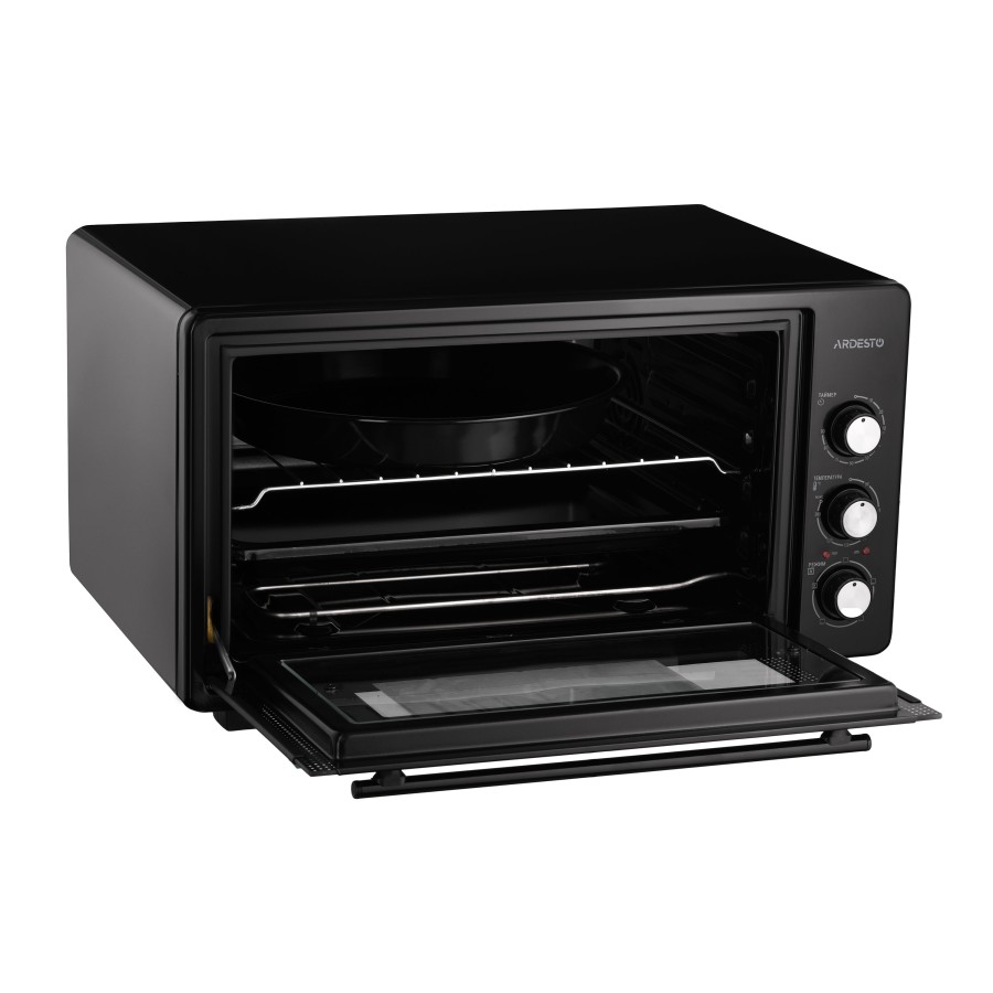 Модель вирізняється продуманою конструкцією, що гарантує безпеку під час використання пристрою. Так, у ARDESTO MEO-S45FGB покращено термоізоляцію, зокрема дверцята оснащено подвійним загартованим склом. Крім того, внутрішня камера об’ємом 45 л має емальоване покриття й освітлення, а також хромовані нагрівальні елементи. Завдяки нековзким ніжкам піч стійка та не соватиме поверхнею, якщо хтось випадково її штовхне.
