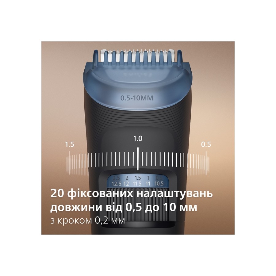 Тример Philips Multigroom series 1000, для бороди і вусів, 1хАА, насадок-4, сталь, чорний (MG1100/16)