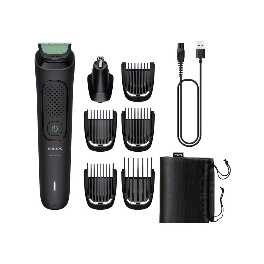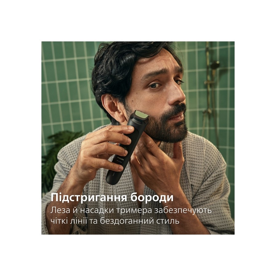 Тример Philips Series 5000, для бороди, вусів, окантовки, брови, носа та вух, 1хАА, насадок-4, чохол, сталь, чорний (NT5650/16)