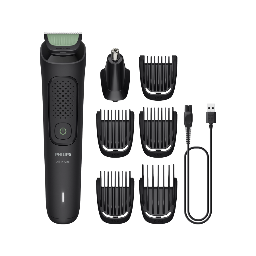 Тример постачається з 7 насадками, які дозволяють підстригати, моделювати та стригти волосся на обличчі, зручно задовольняючи всі потреби в догляді.