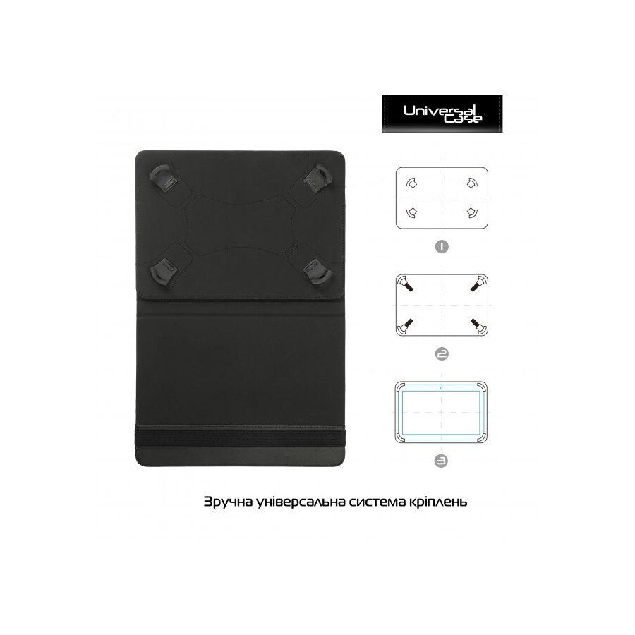 Додатково чохол має функцію зручної підставки для комфортнішого повсякденного використання планшета. Чохол щільно та надійно закріплює пристрій за допомогою кріплення на скобах. Кріплення виготовлене з високоякісних матеріалів.