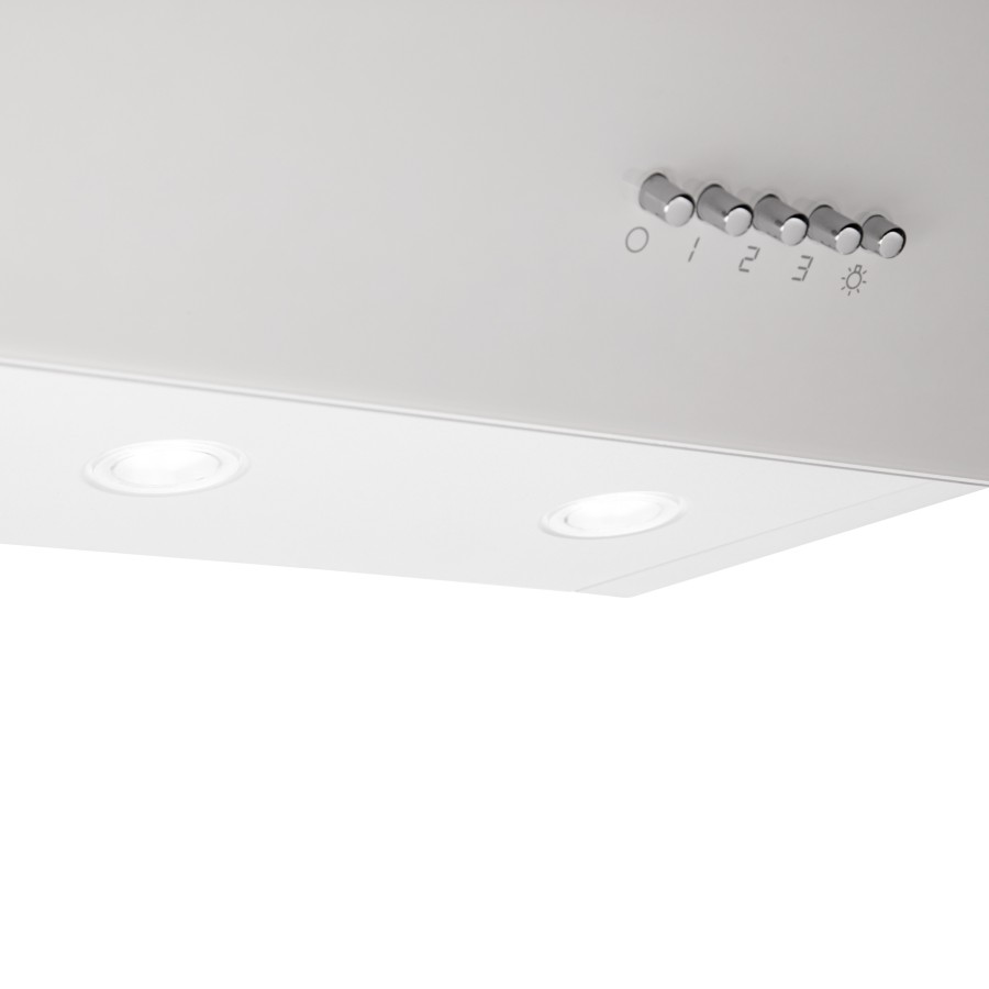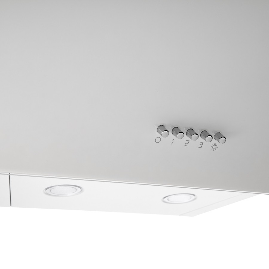 Двигун потужністю 115 Вт забезпечує продуктивність до 900 м³/год (за вільного відведення повітря). Керування витяжкою просте та зрозуміле – кнопкова панель дає змогу швидко вибрати одну із трьох швидкостей і вмикати або вимикати освітлення.