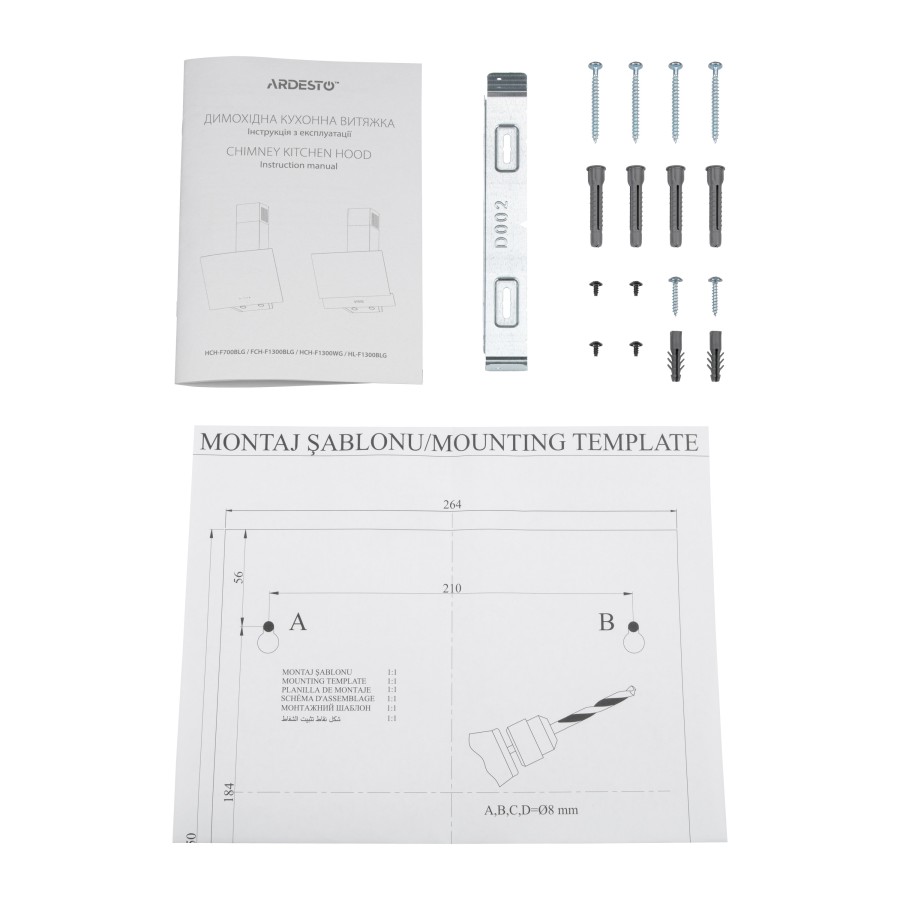 Настінне кріплення з підключенням до повітропроводу діаметром 120 мм. У комплект є все необхідне – монтажні елементи, інструкція з гарантійним талоном і кабель живлення 1,3 м із вилкою європейського зразка.