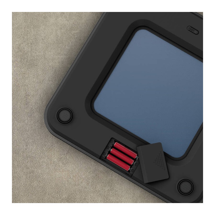Ваги Tefal Classic PP1905V0 вирізняються міцною платформою з загартованого скла, яка витримує навантаження до 180 кг і забезпечує безпечну поверхню для зважування. Дисплей автоматично активується при контакті, показуючи результати з точністю 100 г у зручних одиницях (кг, фунти, ст. фунти), а функція автоматичного вимкнення економить енергію. Темно-синій колір додає елегантності, роблячи ваги стильним елементом інтер'єру ванної чи спальні. Комплект батарейок AAA на 3 шт. дозволяє почати використання одразу після розпакування. Компактні розміри (приблизно 30x30 см) і легка вага (близько 1.5 кг) полегшують зберігання та транспортування.