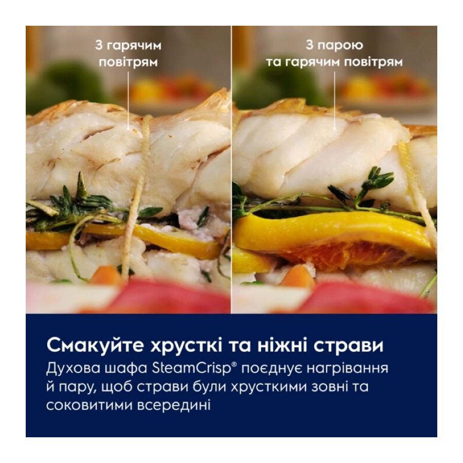 - SteamCrisp® — комбінація пари та конвекції для хрусткої зовнішності й соковитої серединки