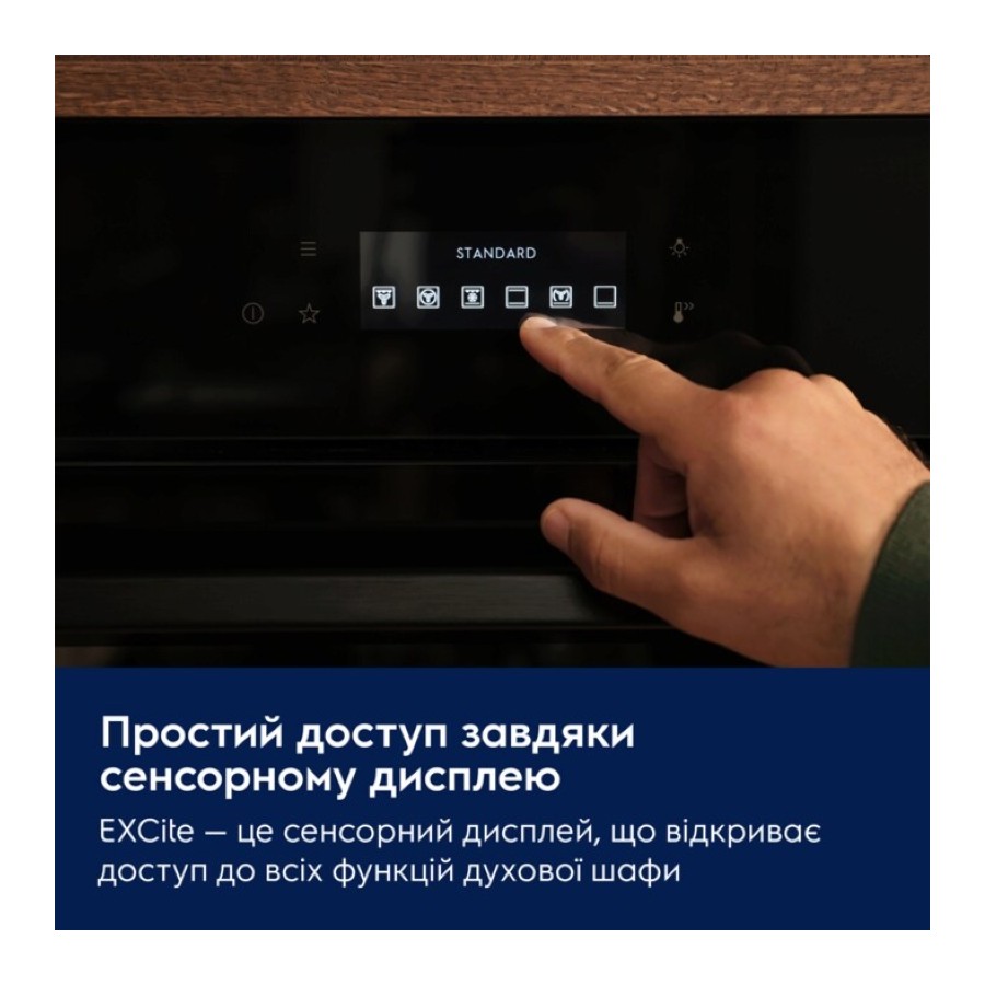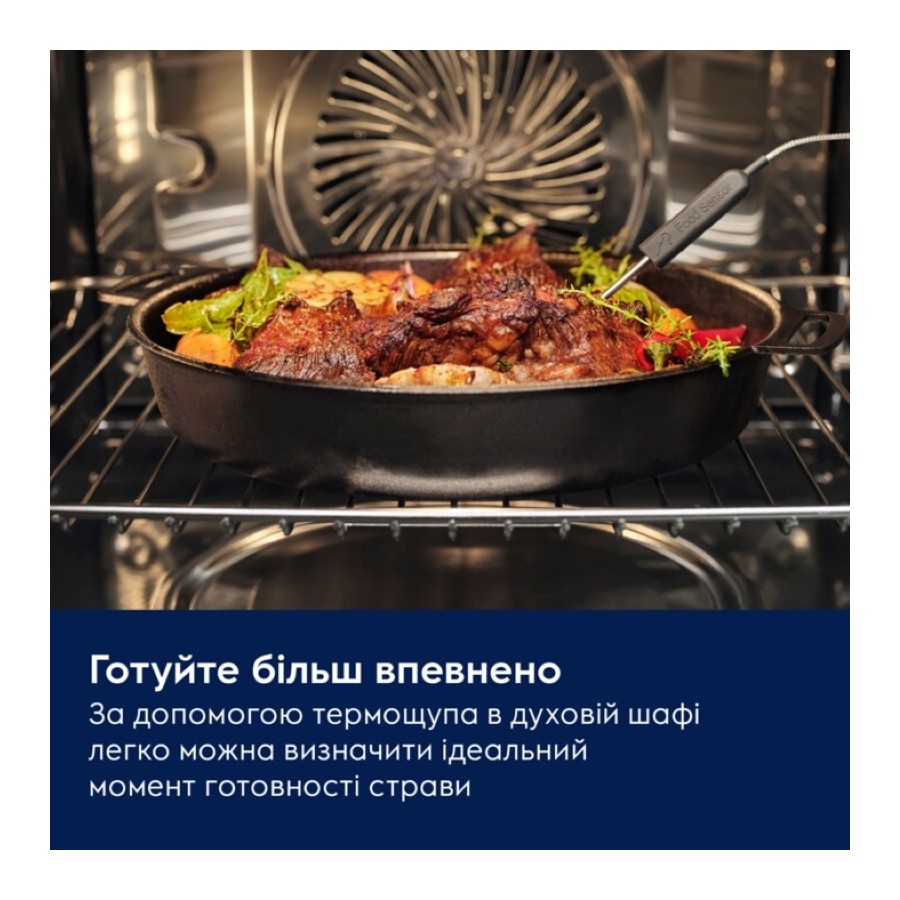 Духова шафа Electrolux серії 700 MealAssist створена для стабільних результатів без зайвих налаштувань. Режим SteamCrisp® додає пару до конвекції, завдяки чому м’ясо лишається соковитим, а риба — ніжнішою порівняно зі звичайною духовкою. Інтерфейс EXCite із чутливим сенсорним TFT-дисплеєм надає миттєвий зворотний зв’язок і швидкий доступ до програм, температури та часу. Термощуп безперервно вимірює температуру усередині страви та автоматично зупиняє приготування після досягнення заданого значення.