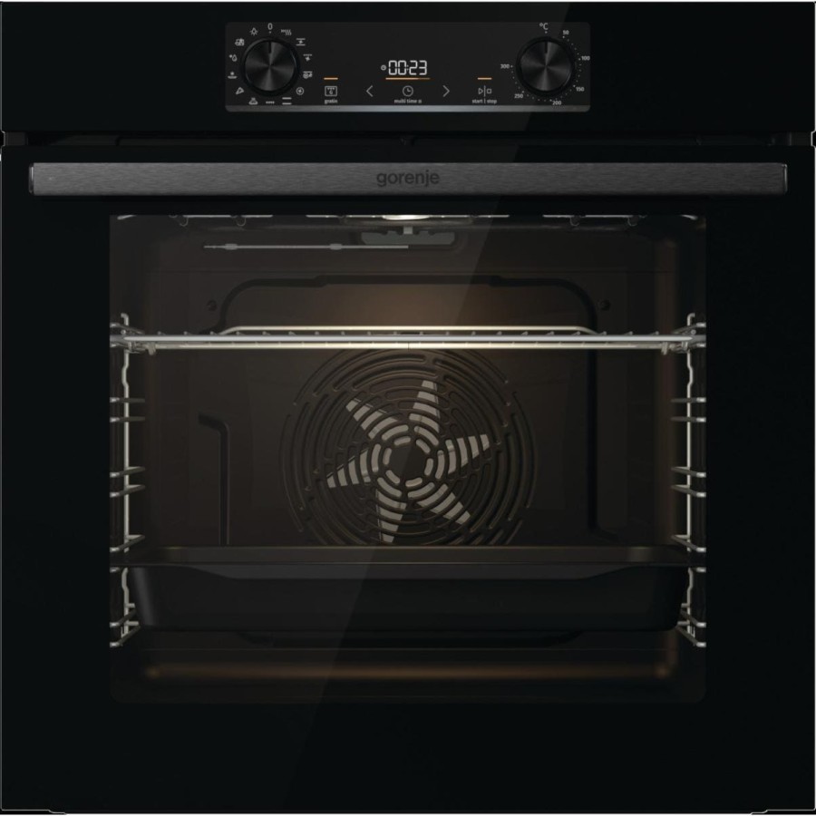 Gorenje BO6737E02BG — це сучасна вбудована електрична духова шафа з об’ємом 77 л, ідеальна для великих страв і випікання на кількох рівнях. Завдяки класу енергоефективності A+ і споживанню 0.821 кВт/год (вентиляційний режим) вона економічна у використанні.