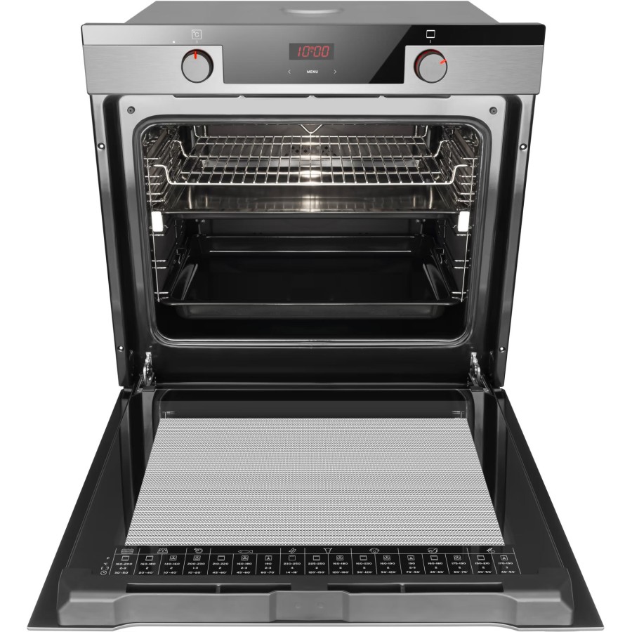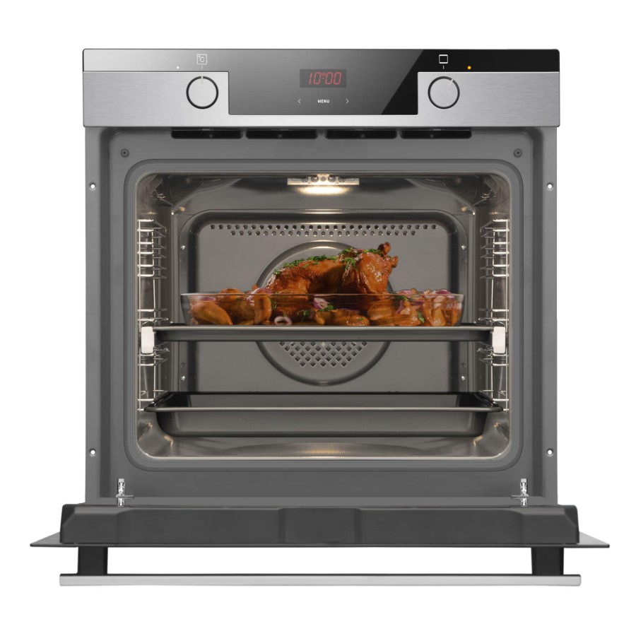 Ідеальне обсмажування або випікання - це не тільки гарні кулінарні навички, для початку нам потрібна відповідна духова шафа. З BakingPro System™ нам не потрібно турбуватися про нерівномірне випікання пирогів або занадто засмажене м'ясо! Тістечка та пироги завжди ідеальні в центрі і не дуже засмажені по краях, з точним рівномірним розподілом тепла і температури по всій порожнині духової шафи. Навіть ті частини страви, які знаходяться ближче до дверцят духової шафи, будуть відмінно приготовані завдяки великим зміщеним нагрівачам, розташованим поруч з передньою частиною духової шафи. Об'єм духової шафи тепер більший, ніж раніше, і має більше рівнів випікання, щоб одночасно готувати більше страв. Розміри дек для випікання і запікання також збільшилися, і оновлений повітряний вентилятор швидше нагріває духову шафу до 150°C всього за 3 хвилини! Нова система ламп на верхній стінці камери духової шафи робить перевірку готовності страви ще простішою, ніж раніше. Ультрасучасні поліпшені духові шафи: для кращої якості випічки і запікання.