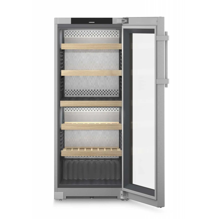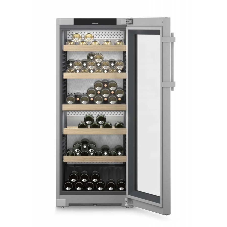 Максимальна місткість. Кліматична винна шафа Liebherr також полегшує розміщення колекції вин, що постійно поповнюється. Щоб сповна використовувати її місткість, камеру створено так, щоб пляшки можна було розташовувати на дерев’яних полицях шийками одна до одної. Це створює багато місця для винних запасів, навіть якщо вони регулярно поповнюються. Тож сміливо розширюйте свою колекцію.