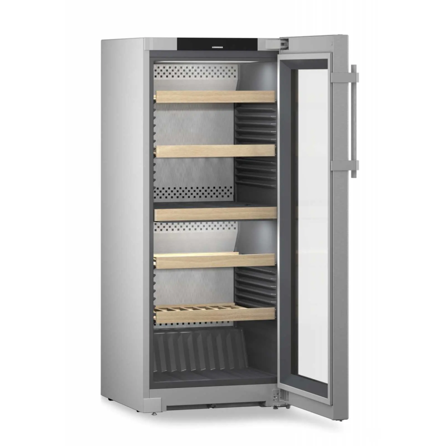 Ваше вино потребує тиші й спокою. Тому в наших винних шафах використовуються дуже тихі компресори, спеціально розроблені компанією Liebherr, і стійкі дерев’яні полиці з масиву бука. Завдяки цьому ваше вино визріватиме в тихому й спокійному середовищі.