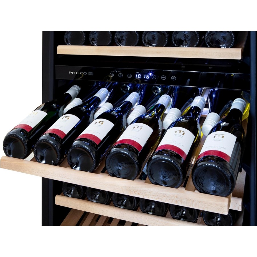 Холодильник для вина Philco PW462GDB є ідеальним рішенням для зберігання вашої колекції вина. Завдяки об'єму 135 літрів і можливості вміщувати до 46 пляшок, він забезпечує достатньо місця для різних видів вина. Дві зони охолодження дозволяють зберігати червоне і біле вино при різних температурах, що забезпечує оптимальні умови для кожного виду.