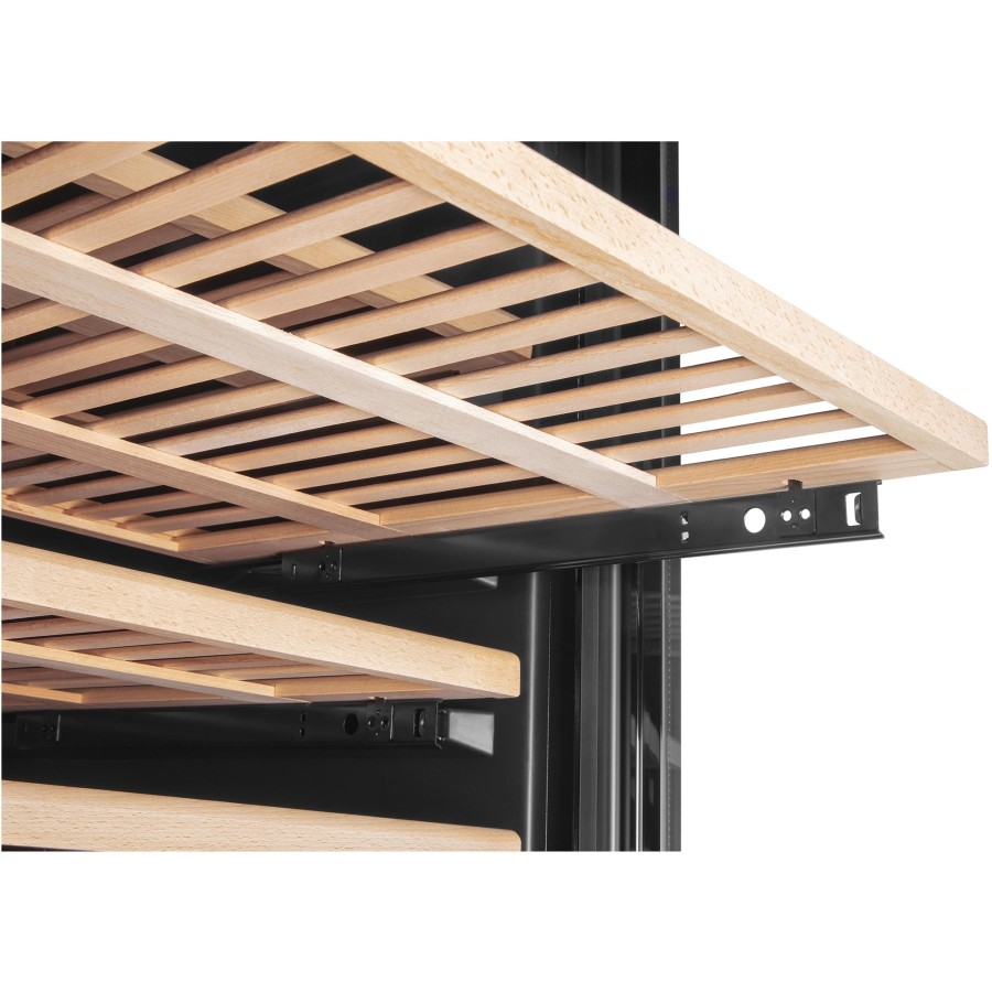 Цей холодильник оснащений сучасним дисплеєм, який дозволяє легко контролювати температуру в обох зонах. Підсвітка додає елегантності і дозволяє зручно переглядати вашу колекцію навіть у темряві. Чорний колір корпусу додає стильного вигляду, що робить цей холодильник чудовим доповненням до будь-якого інтер'єру.