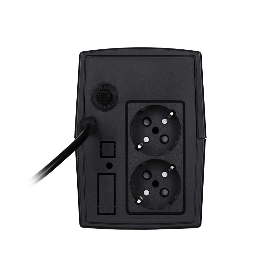 ДБЖ 2E-ED850 лінійно-інтерактивного типу потужністю 850 ВА/480 Вт. Вхід: 162-295 VAC. Вихід: 220/230/240 В ±10 %. Частота становить 50/60 Гц ± 1% (автоматичне визначення). Автоматичний тест при ввімкненні. Автоматична стабілізація напруги AVR. Наявні дві розетки Schuko з батарейним живленням.