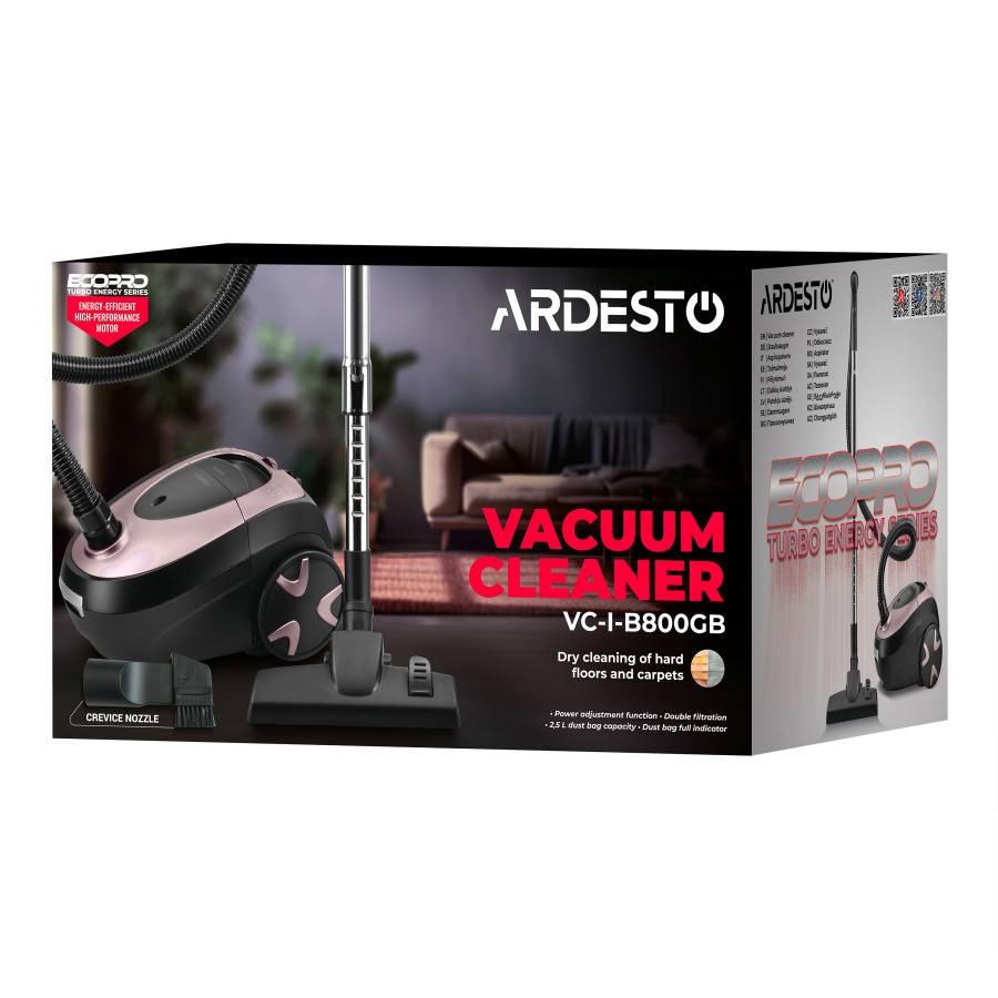 Пилосос Ardesto мішковий, 800Вт, мішок- 2.5л, HEPA, чорно-бронзовий
