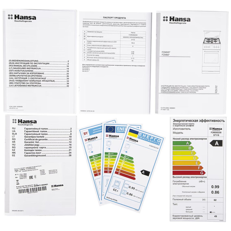 Плита Hansa комбінована, 62л, 50x60см, дисплей, конвекція, чавун, нерж