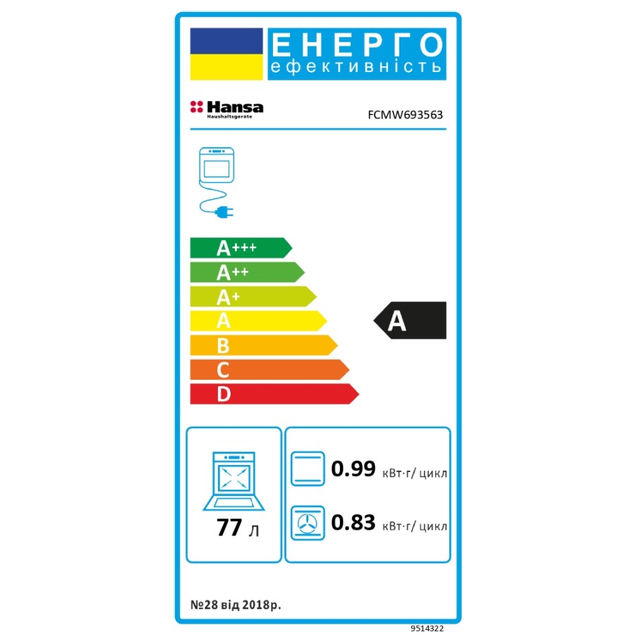 Плита комбінована Hansa, 60х60см, 77л, чавун, газ контр., дисплей, білий