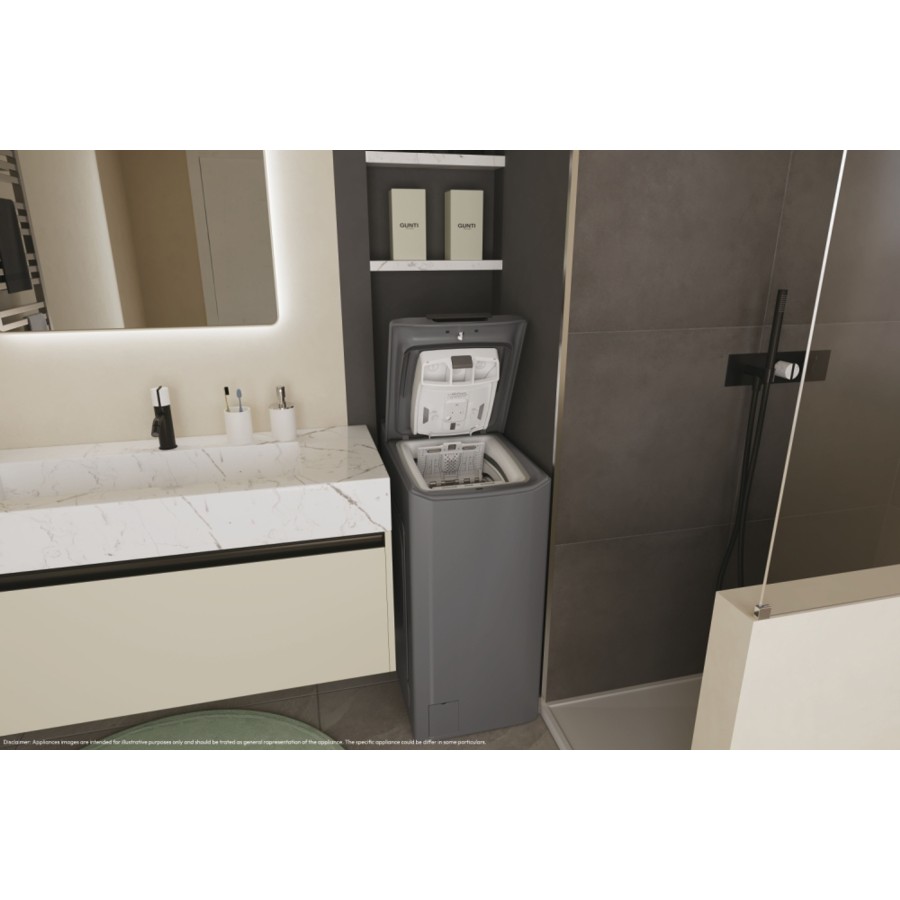Пральна машина Indesit фронтальна, 6кг, 1000, A+++, 43см, дисплей, люк чорний, білий (OMTWSE61051WKUA)