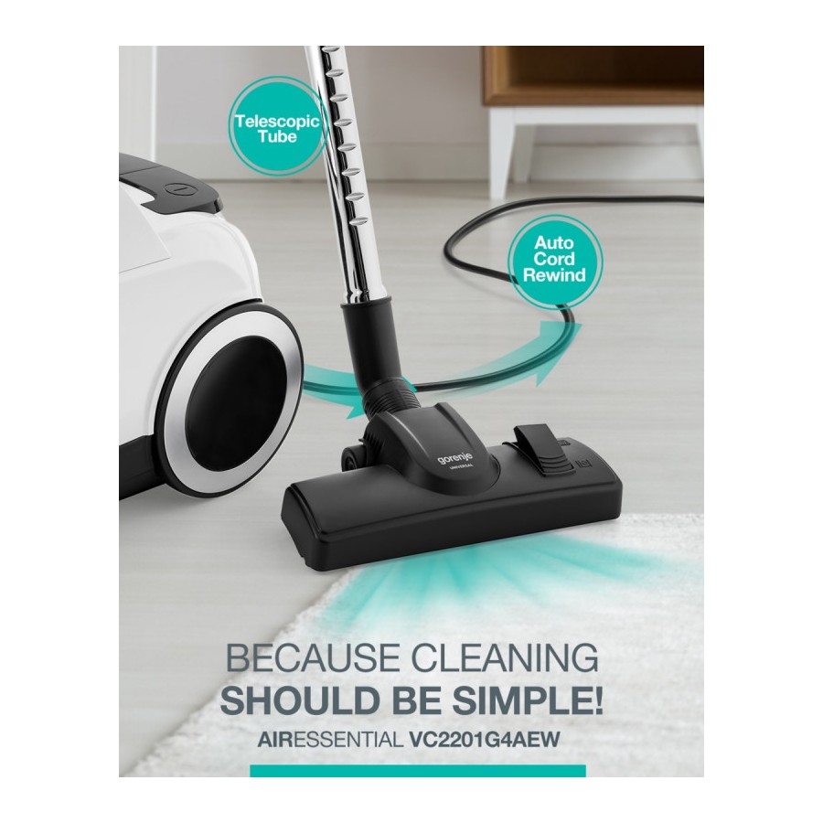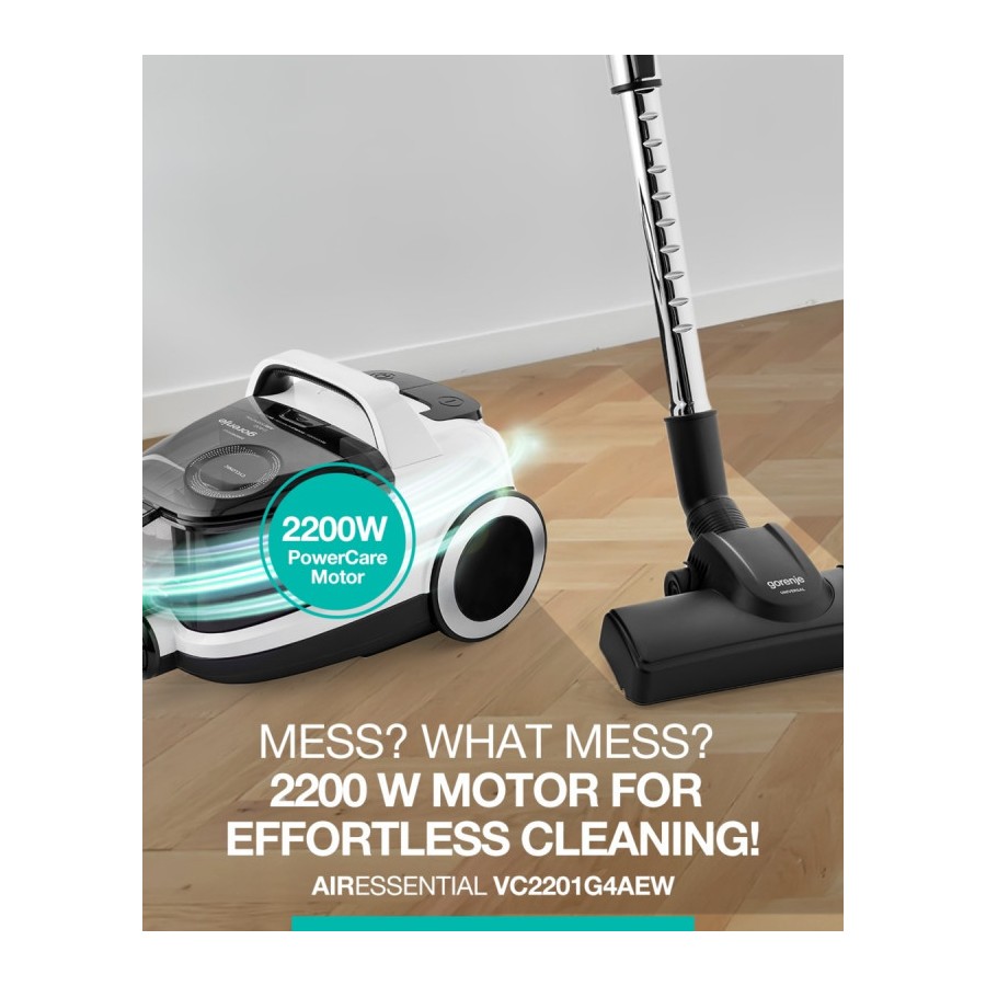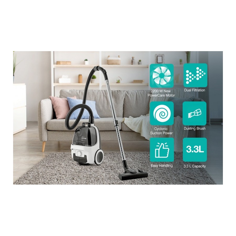 Пилосос Gorenje контейнерний, 800Вт, конт пил -3.3л, HEPA, телескоп трубка, сенсорне упр, білий
