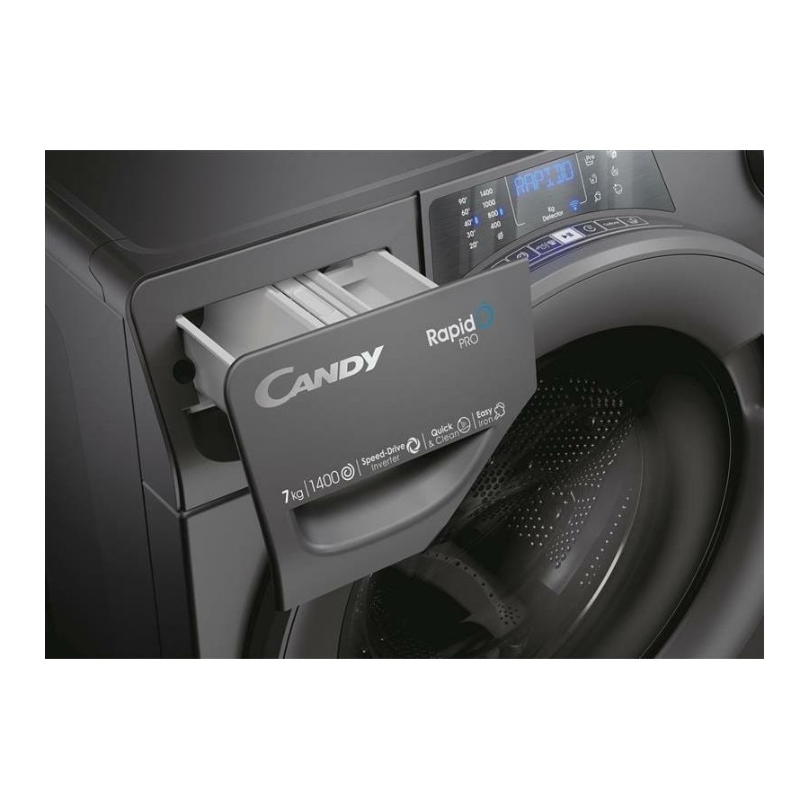 Інноваційний ергономічний дизайн пральної машини candy rapid pro був розроблений, щоб зробити прання комфортним. Пральна машина має найбільший і найвищий завантажувальний люк, що робить завантаження і розвантаження легким і легким.