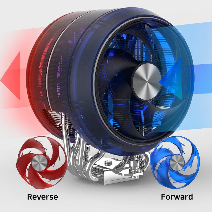 - п'ять мідних теплових трубок, що на пряму контактують з процесором і розташовані один від одного на оптимальній відстані. Кулер виготовлений із застосуванням оновленої технології DTH (технологія прямого контакту) – RDTH (Reverse Direct Touch Heatpipe), яка застосовується для збільшення розсіювання тепла від процесора та підвищення продуктивності охолодження;