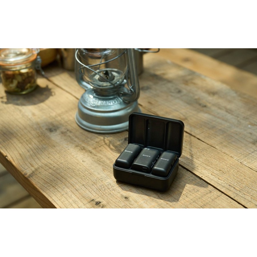 До комплекту ECM-W3 входять два мікрофони-передавачі та двоканальний ресивер, що дає змогу вловлювати голос двох мовців без дротів. Максимальна відстань з’єднання – 150 м без перешкод на лінії прямої видимості, а Bluetooth 5.3 (Bluetooth Low Energy) і кодеки LC3plus забезпечують низьке споживання енергії та затримку, а також високу якість звуку. Це дало змогу зменшити розмір акумулятора.