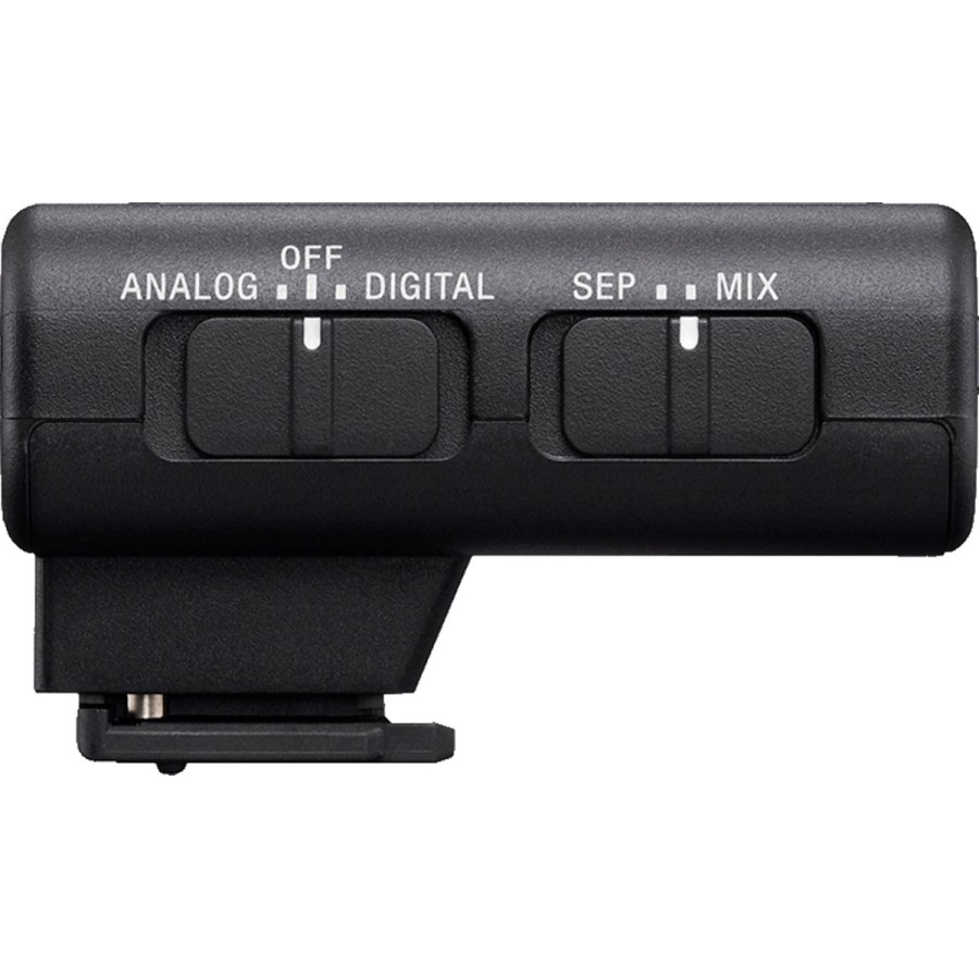 Якщо підключити двоканальний ресивер до камери Sony з підтримкою мультиінтерфейсного гнізда (MI), наприклад до однієї із цифрових камер серії α зі змінними об’єктивами або камери для відеоблогів, можна записувати цифровий вихідний аудіосигнал із ресивера безпосередньо на камеру, що забезпечує високу якість записаного звуку з мінімальним рівнем шуму.
