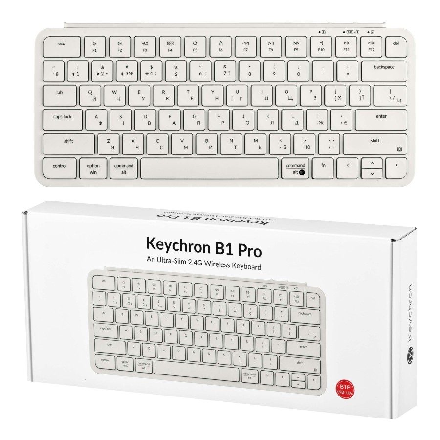Клавіатура мембрана Keychron B1 Pro, USB/WL/BT, ivory white (B1P-K8-UA)