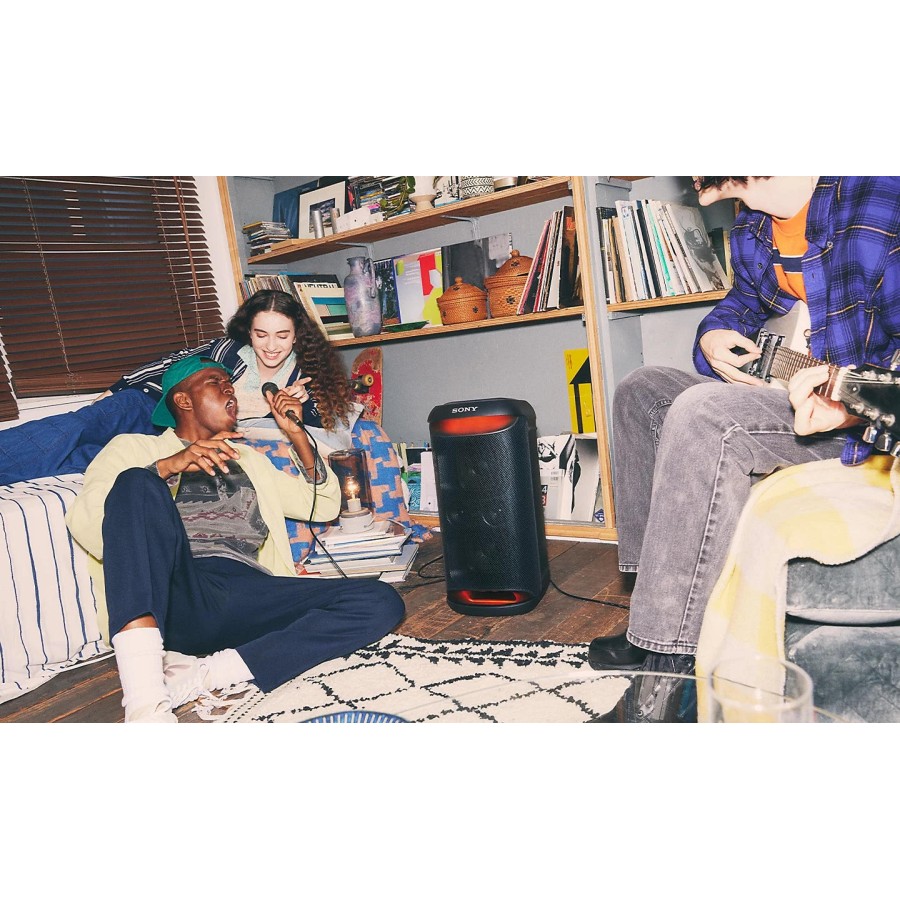 Візьміть бездротову вечірню колонку SRS-XV500 і влаштовуйте вечірки де завгодно. Ця колонка має потужний звук, вбудоване освітлення та акумулятор з тривалим часом роботи – ви навіть можете підключити мікрофон для караоке і співати всю ніч. З XV500 у вас є все необхідне, щоб розважити друзів і родину.
