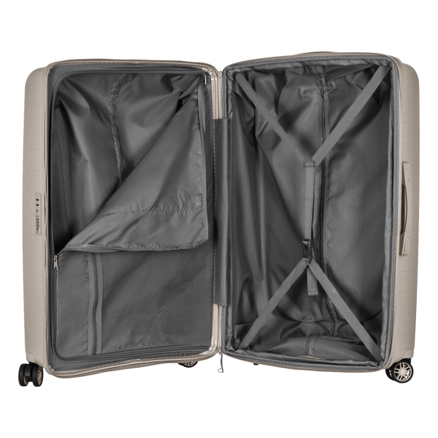 Жорсткий корпус виготовлено зі 100% поліпропілену, що забезпечує надзвичайну міцність за мінімальної ваги. Усередині валіз передбачено розділювачі та регульовані пакувальні паски для надійної фіксації речей, це організовує і впорядковує поклажу, і в такий спосіб забезпечується високий рівень комфорту та безпеки, що зробить подорож безтурботною.