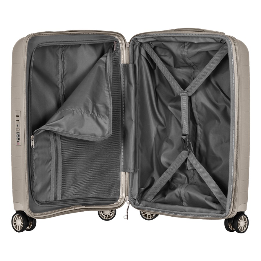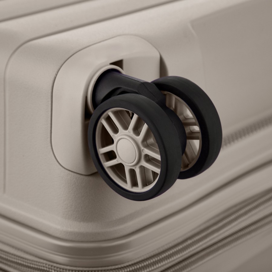 Жорсткий корпус виготовлено зі 100% поліпропілену, що забезпечує надзвичайну міцність за мінімальної ваги. Усередині валіз передбачено розділювачі та регульовані пакувальні паски для надійної фіксації речей, це організовує і впорядковує поклажу, і в такий спосіб забезпечується високий рівень комфорту та безпеки, що зробить подорож безтурботною.