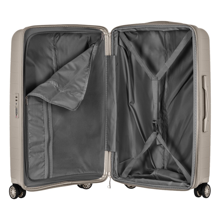 Жорсткий корпус виготовлено зі 100% поліпропілену, що забезпечує надзвичайну міцність за мінімальної ваги. Усередині валіз передбачено розділювачі та регульовані пакувальні паски для надійної фіксації речей, це організовує і впорядковує поклажу, і в такий спосіб забезпечується високий рівень комфорту та безпеки, що зробить подорож безтурботною.