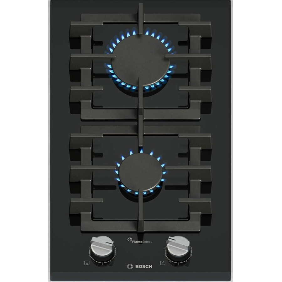 Дві конфорки: передня — стандартна, задня — підвищеної потужності (разом 4.75 кВт). Запалювання однією рукою та термоелектричний захист від витоку газу — стандарт безпеки Bosch. Заводське налаштування на природний газ 20 мбар, у комплекті повний набір форсунків для зрідженого газу 28-30/37 мбар.