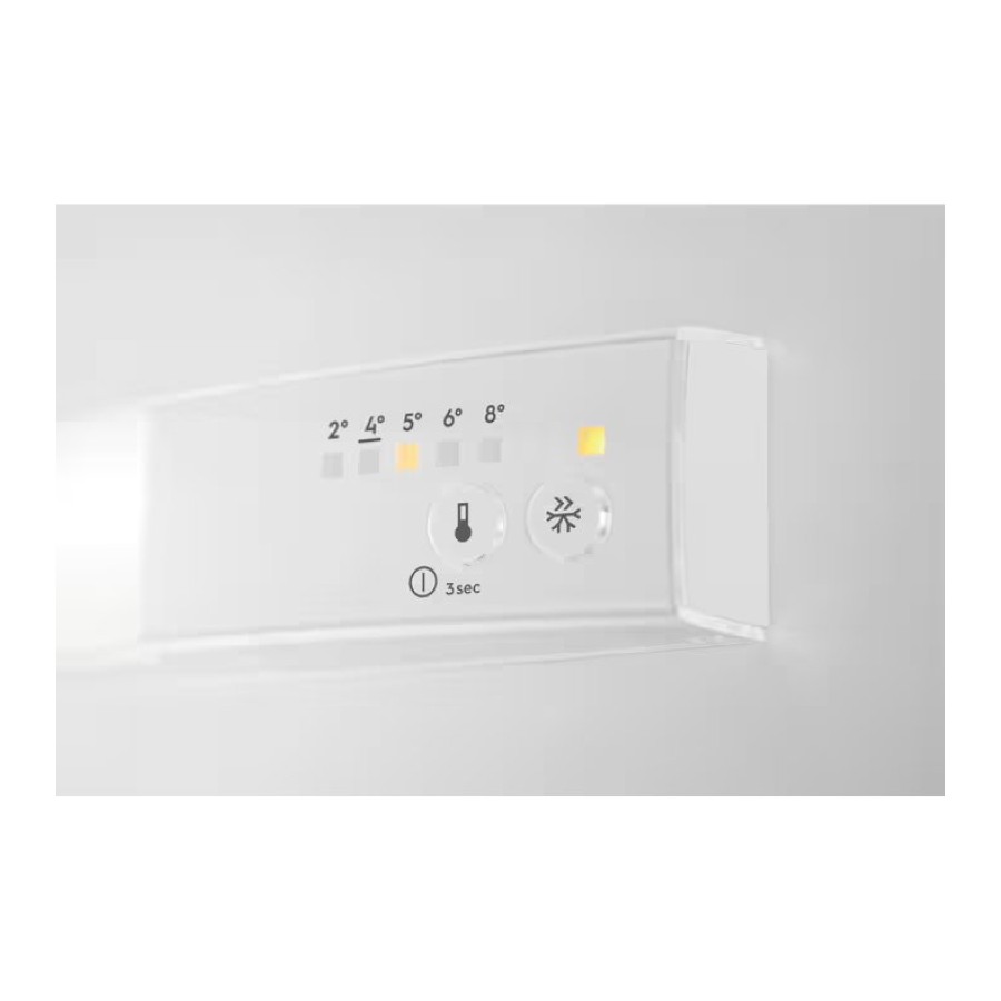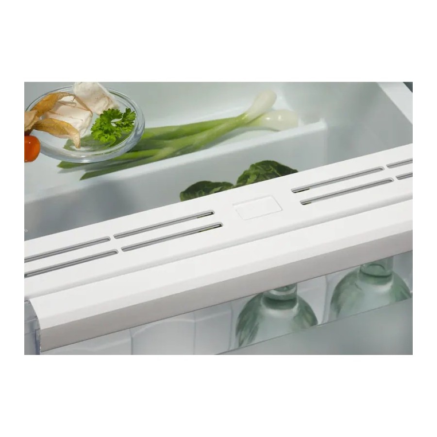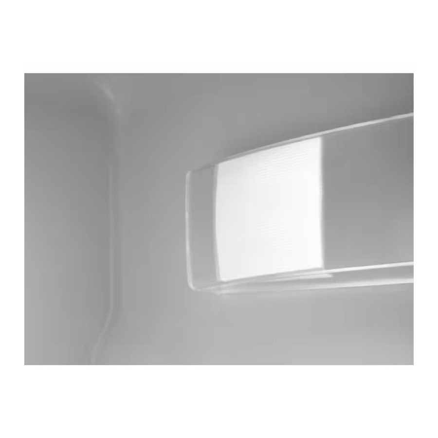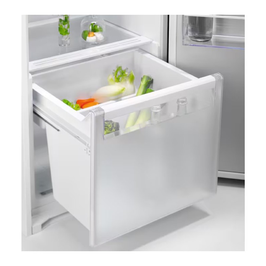 Вбудований однокамерний холодильник Electrolux створений для повністю інтегрованого монтажу з розсувним фасадом і працює як окрема холодильна камера без морозильного відділення. Корисний об’єм 310 л забезпечує простір для щоденних запасів продуктів родини. Усередині розміщені п’ять полиць повної ширини та велика висувна шухляда, що дає змогу зручно розкладати овочі, фрукти, напої та готові страви і швидко знаходити потрібні продукти.