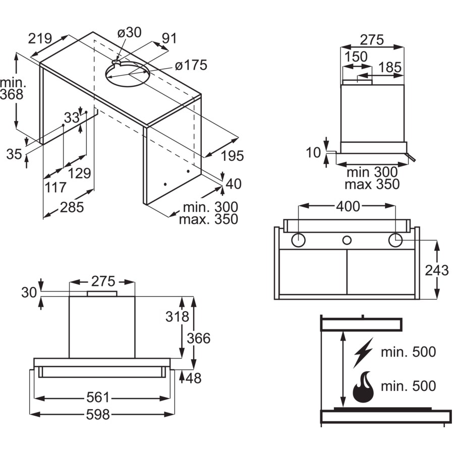 - Продуктивність: • звичайний режим — до 500 м³/год • інтенсивний (Boost) — 600 м³/год (автоматично вимикається через 6 хв) • рециркуляція — до 340 м³/год