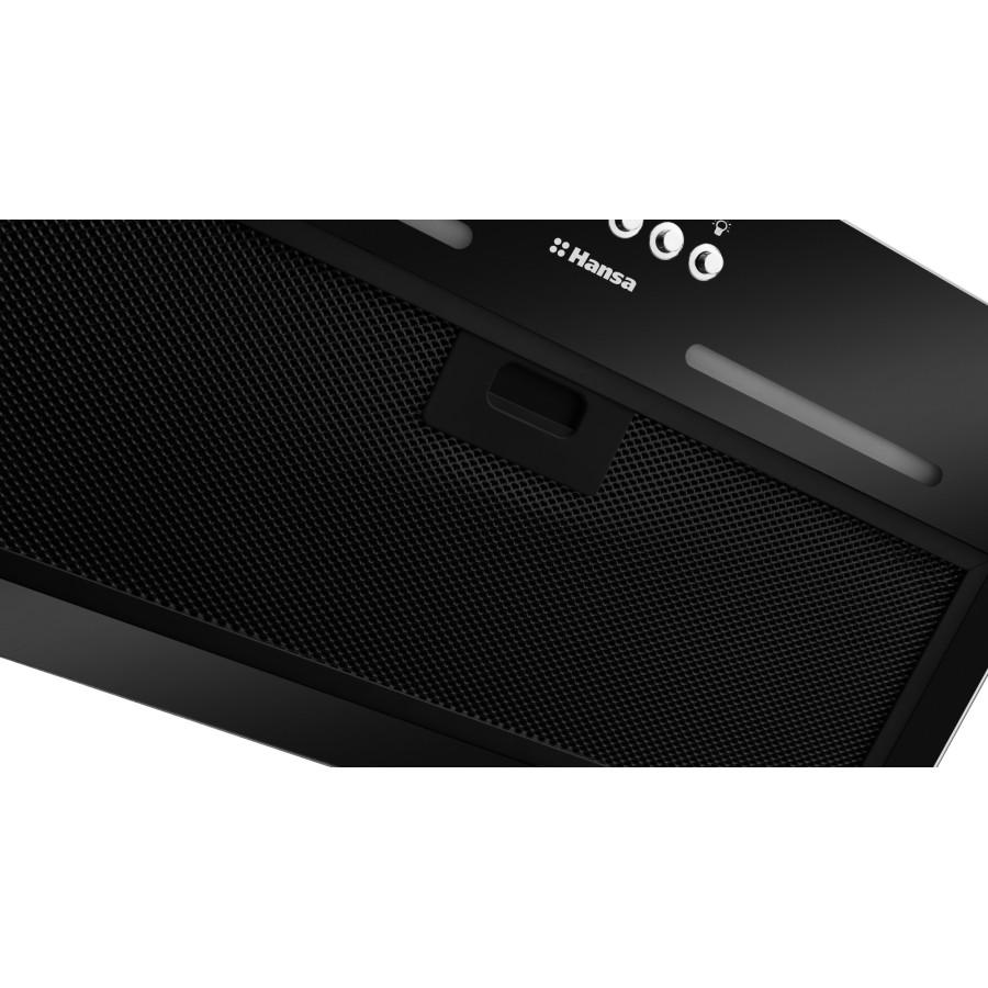 Hansa OMP6251BGH — це надійна картриджна витяжка з можливістю роботи у двох режимах: відведення повітря або рециркуляція. Корпус поєднує сталеву основу з чорним склом, створюючи стриманий сучасний вигляд. Модель має продуктивність 400 м³/год і оснащена трьома рівнями швидкості для різних типів готування. Світлодіодна стрічка з нейтральним холодним відтінком забезпечує рівномірне освітлення поверхні. Завдяки алюмінієвому жировому фільтру та можливості встановлення вугільних фільтрів KF17154 повітря залишається чистим навіть під час інтенсивного приготування.
