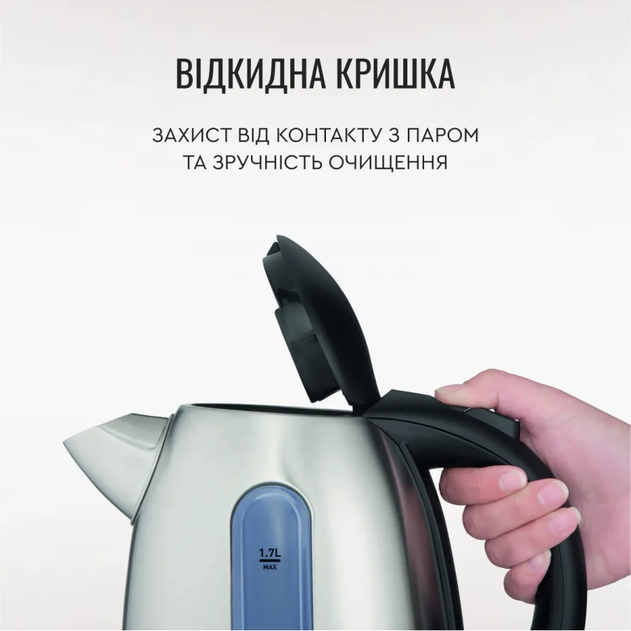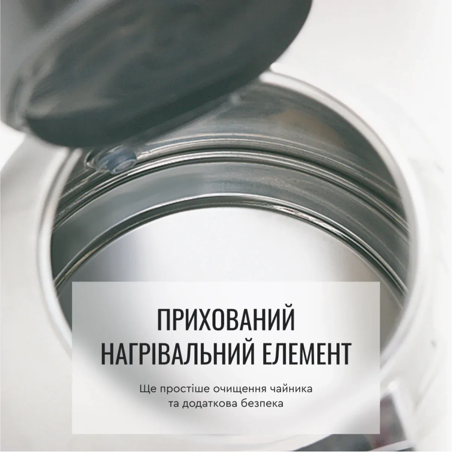 Дарує ще більшу простоту очищення внутрішньої поверхні чайника. А ще – робить чайник максимально безпечним.