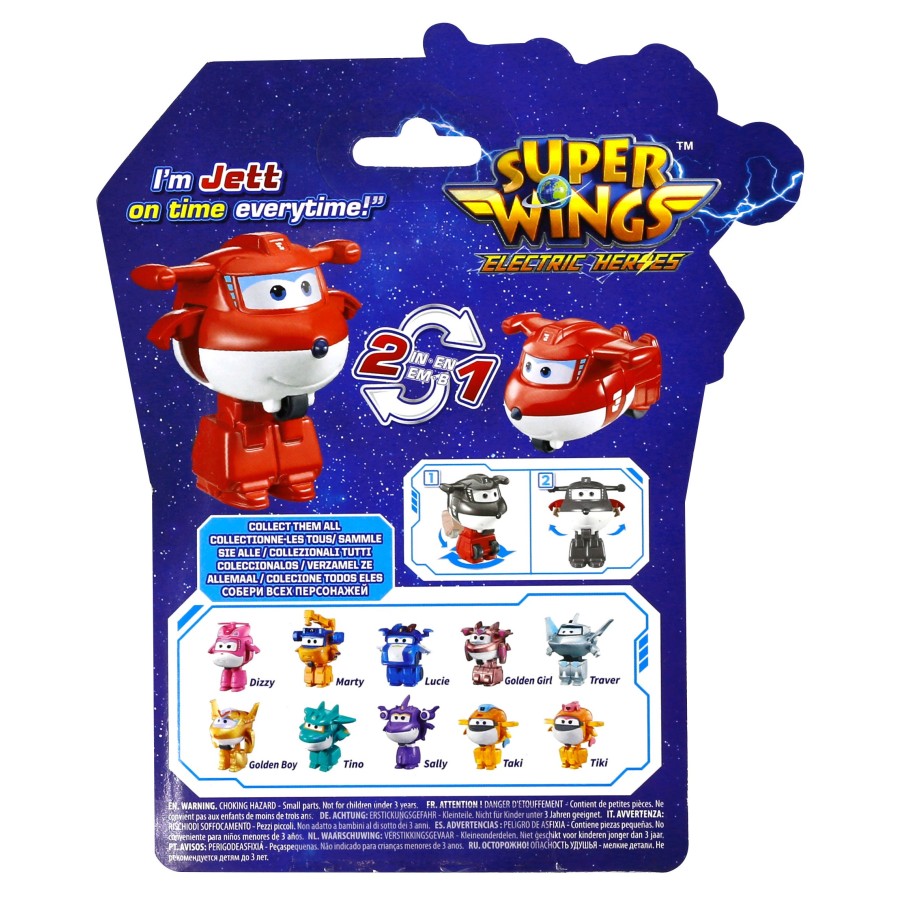 Super Wings Transform-a-Bots Джетт (Jett) — ігрова фігурка-трансформер для дітей від 3 років за мотивами мультсеріалу Super Wings. Джетт — дружелюбний, грайливий і дуже швидкий літак, що подорожує світом і доставляє посилки дітям. Коли місія ускладнюється, він кличе на допомогу команду Super Wings. Фігурка перетворюється на робота у 3 простих кроки: розкладання крил, трансформація корпусу та фіксація. Висота робота 5 см, обертові колеса для імітації руху, ударостійкий пластик. Дизайн деталізований з упізнаваними рисами персонажа. Комплект без додаткових аксесуарів.