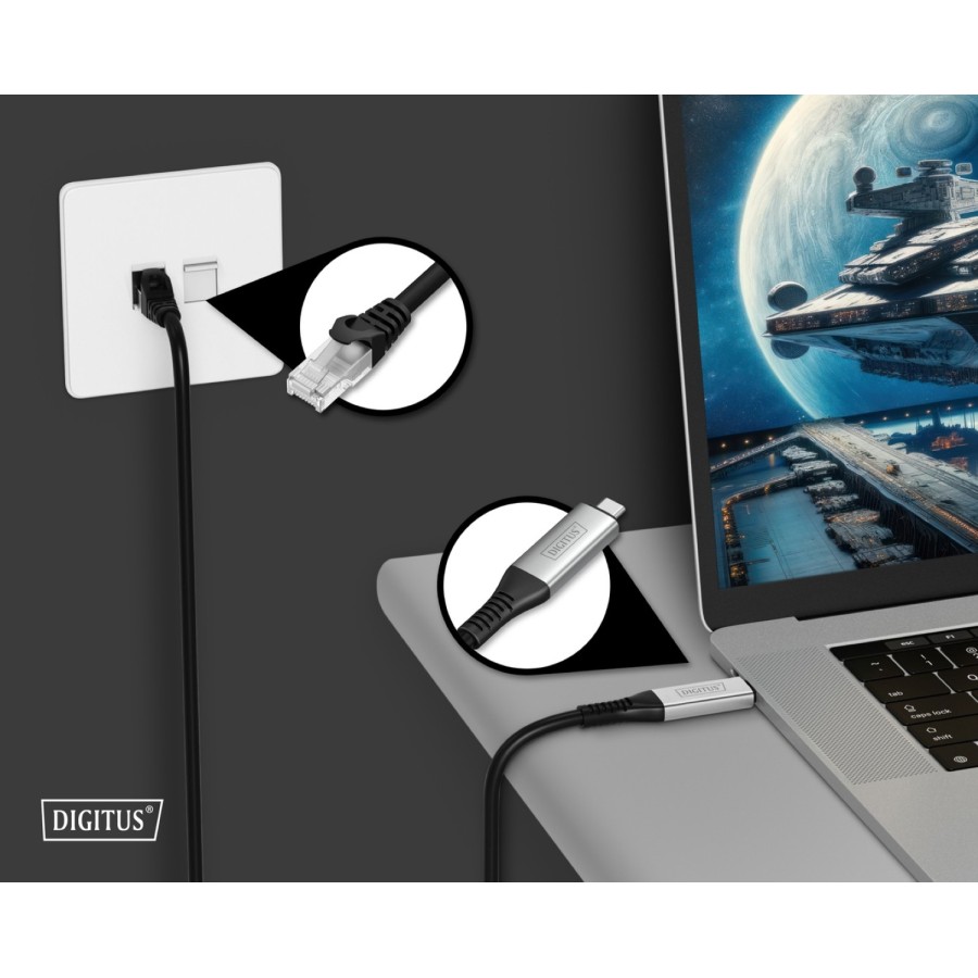За допомогою кабелю Digitus USB-C 3.2 Gen1 - RJ45 Ethernet ви можете легко підключити свій пристрій з підтримкою USB-C до дротової мережі та скористатися стабільним і швидким гігабітним Ethernet-з'єднанням. Кабель замінює звичайний адаптер Ethernet і пропонує компактне рішення, що економить місце, без додаткових пристроїв.