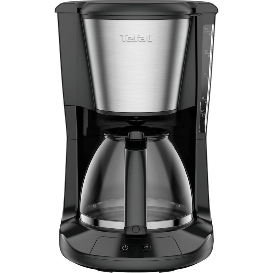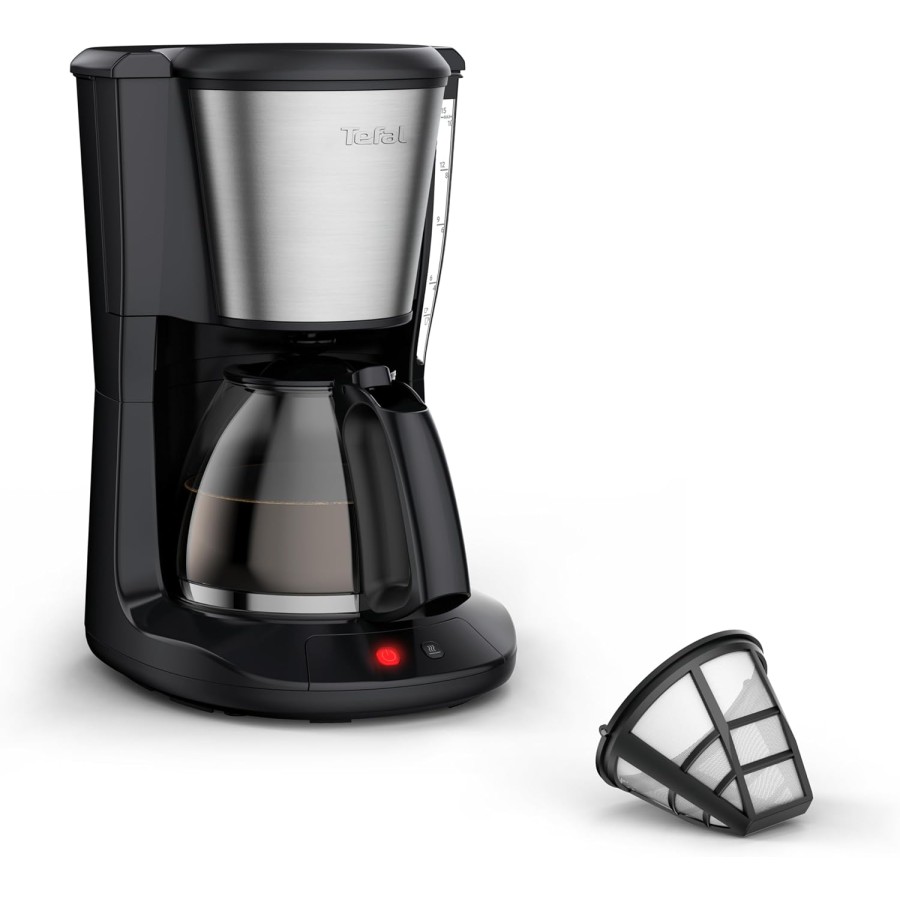 Крапельна кавоварка Tefal Subito (CM5S1DE0) призначена для меленої кави, з резервуаром для води на 1.25 л, що дозволяє приготувати до 10 чашок (приблизно 150 мл кожна) за один цикл. Потужність 1000 Вт забезпечує швидке нагрівання води (закипання за 2-3 хвилини), а фільтраційна система витягує повний смак і аромат. Функція "крапля-стоп" автоматично зупиняє подачу кави при піднятті глечика, дозволяючи наливати порцію без очікування завершення циклу. Автоматичне підігрівання зберігає напій гарячим необмежений час після приготування, що зручно для ранкових ритуалів чи зустрічей.