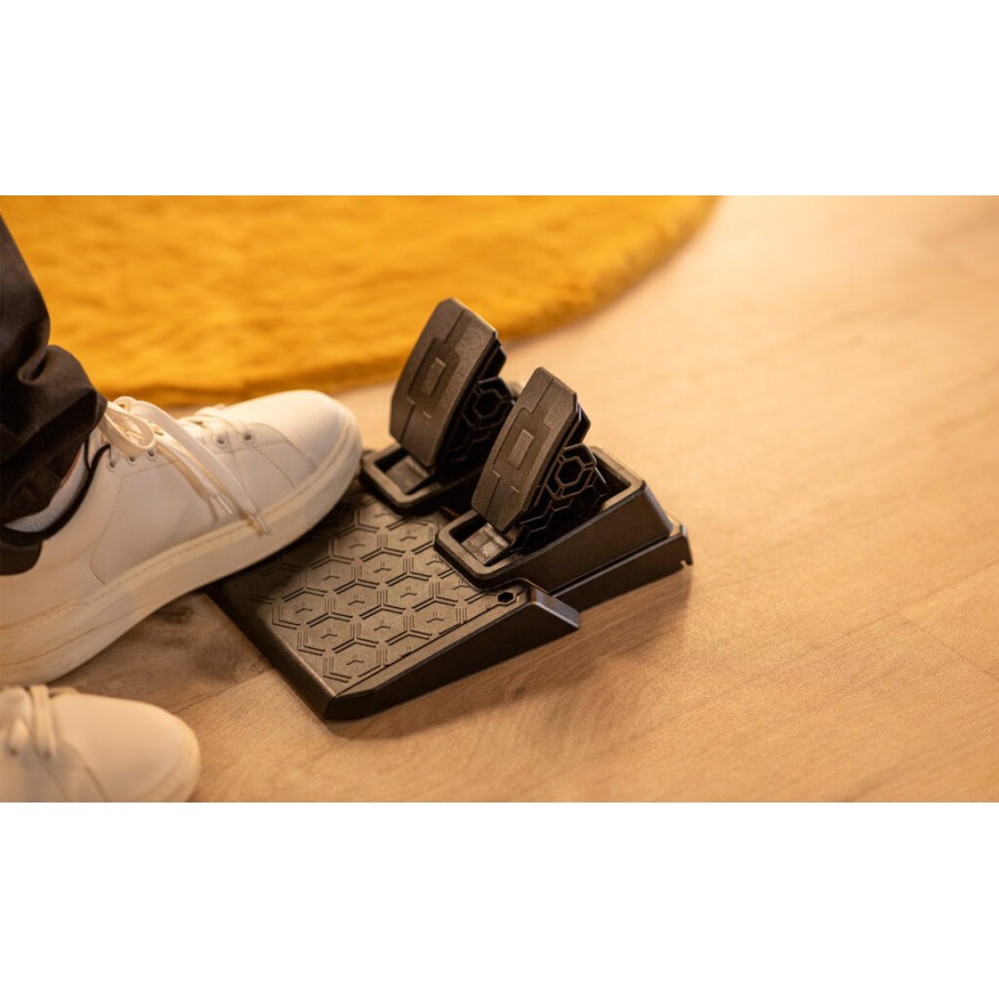 У комплект входить педальний блок з 2 педалями (акселератор та гальма). Педалі оснащені запатентованими датчиками H.E.A.R.T. від Thrustmaster, що забезпечують бездоганну точність роботи протягом багатьох років. Компактний дизайн комплекту педалей дозволяє встановлювати та використовувати його навіть у невеликих приміщеннях.
