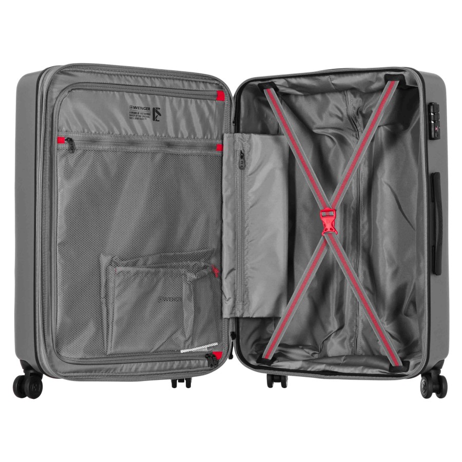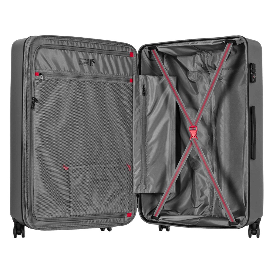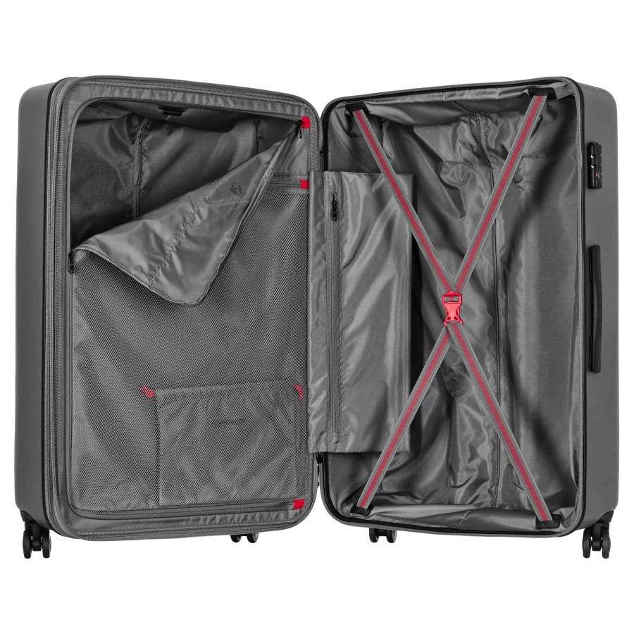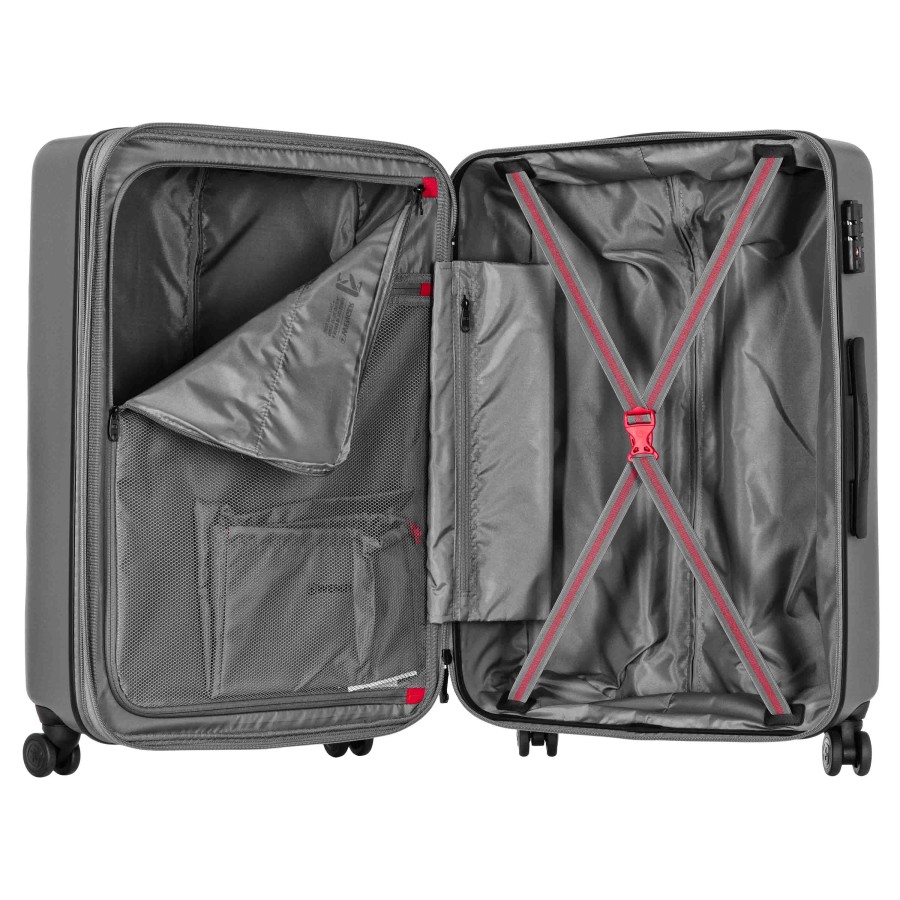 Корпус валіз виготовлений зі суміші полікарбонату та ABS-пластику, що забезпечує міцність у процесі тривалих поїздок. Подвійна захисна застібка посилює зовнішню конструкцію та стабілізує закриття під час транспортування. Інтегрований замок Travel Sentry® Approved формує безпечну систему зберігання. Кожна валіза оснащена внутрішньою сітчастою кишенею та компресійними ременями, що впорядковують розміщення речей. Система розширення збільшує доступний об’єм на 5 см, адаптуючи простір під додатковий багаж. До комплекту входить окремий чохол для взуття, що створює додаткову організацію всередині.