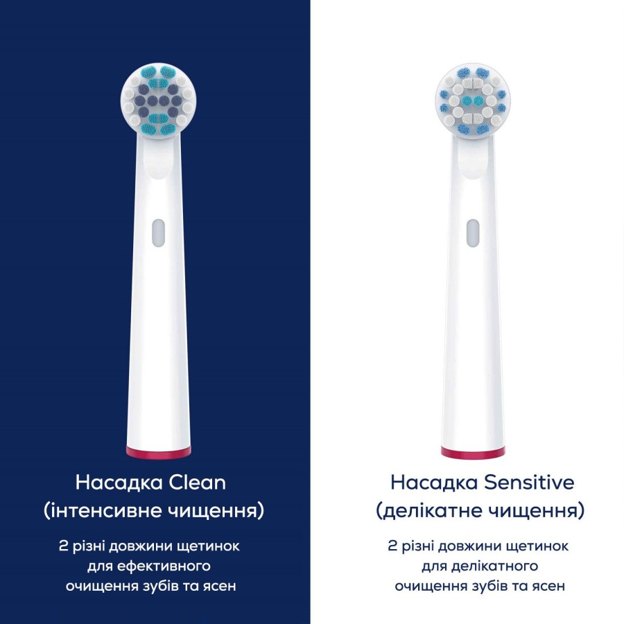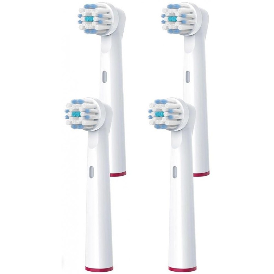 Конструкція кріплення дає змогу швидко встановлювати й знімати насадки у повсякденному користуванні. У наборі передбачено чотири насадки із захисними ковпачками та кольоровими кільцями, що зручно як для особистого, так і для сімейного використання. Виробник рекомендує змінювати насадку приблизно раз на три місяці або за видимими ознаками зношення щетинок.