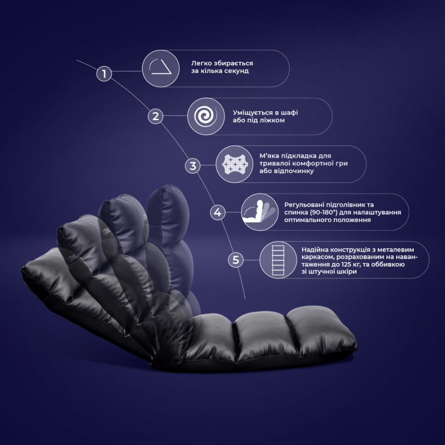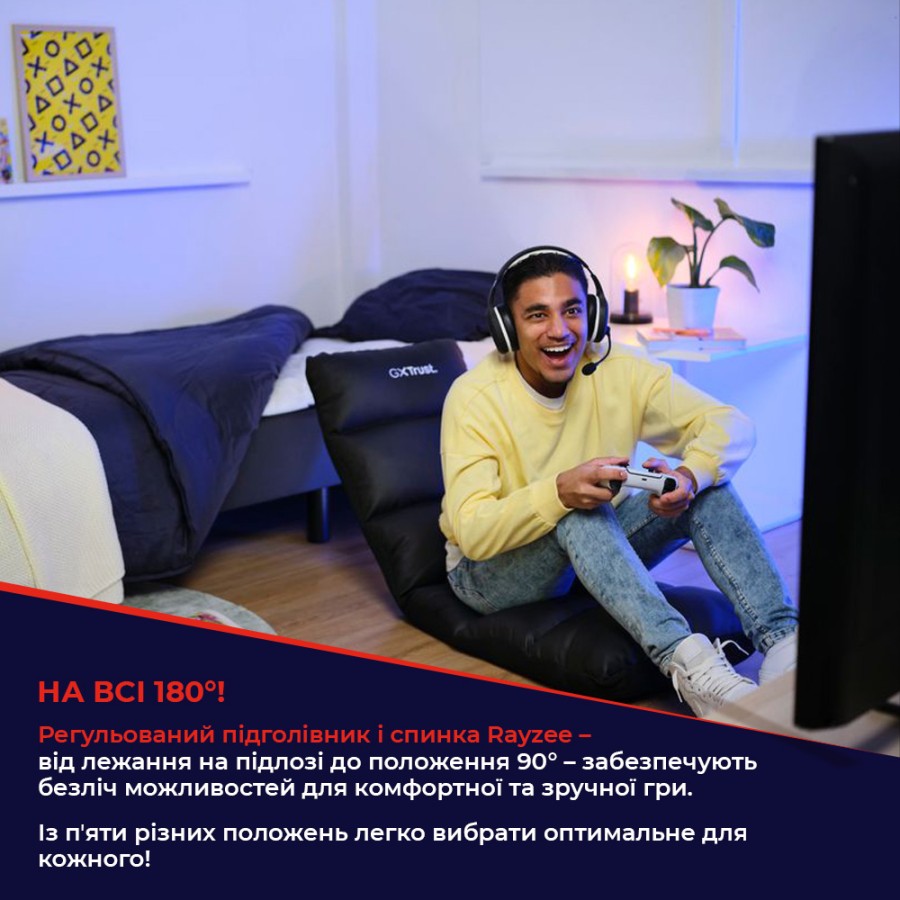 Регульований підголівник і спинка Rayzee — від положення на підлозі до кута 90° — надає вам стільки можливостей для комфортної та зручної гри. З 5 різних положень на вибір легко знайти ідеальний кут для себе!
